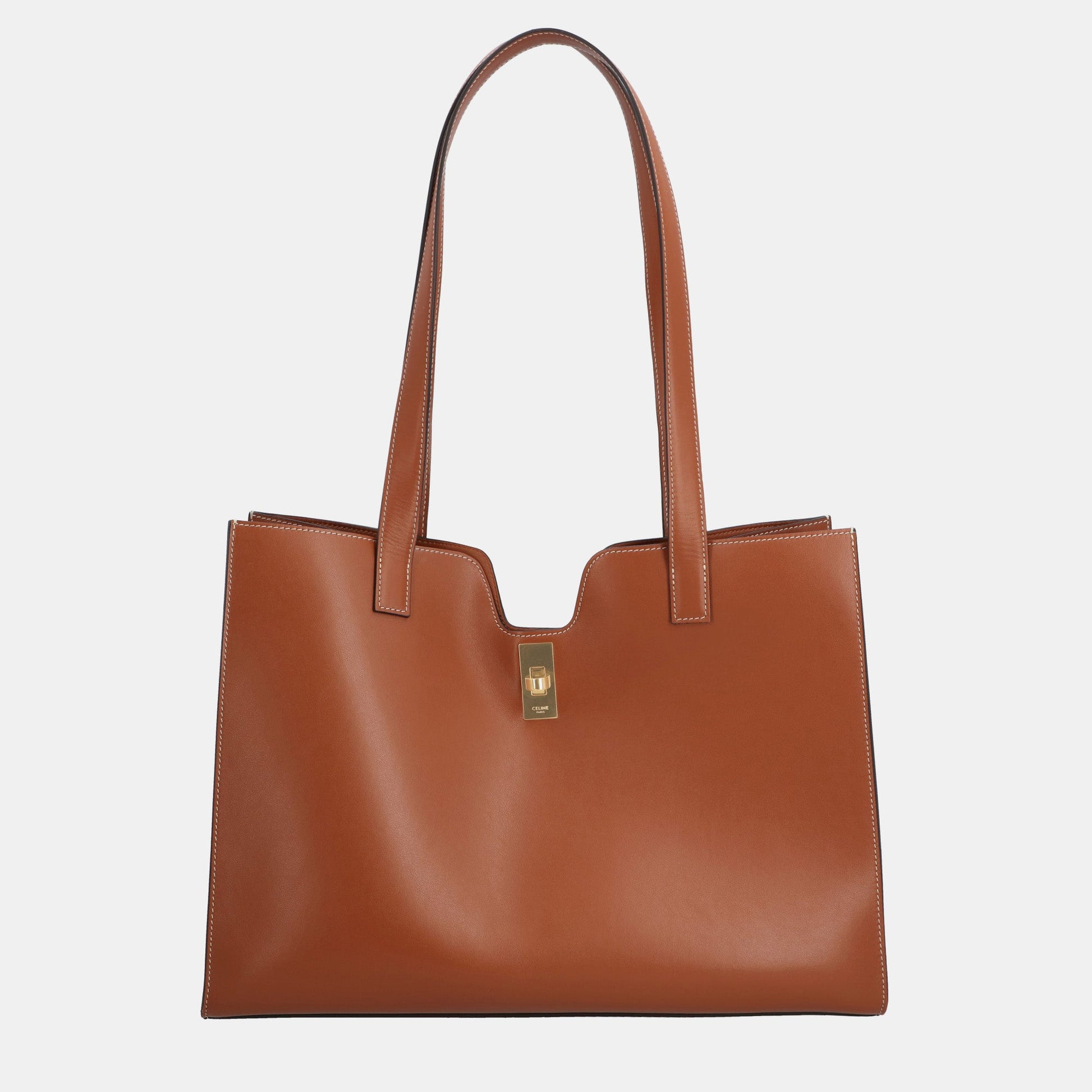 Celine Brown Leather Smooth Cabas 16 Tote Bag