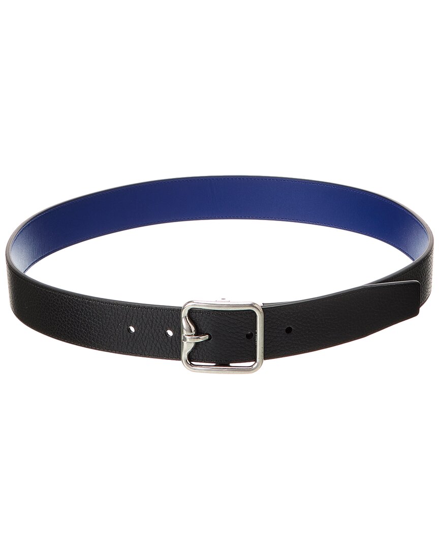 Introducing the Burberry B Buckle Reversible Leather Belt, a sophisticated addition to your accessory collection. Crafted in Italy from black leather, this belt features a stylish reversible design, allowing you to switch between a classic black leather look and a Knight leather option. The silver-tone pin buckle closure adds a touch of elegance to this versatile piece. With a width of 1.4 inches, this belt is perfect for adding a refined finishing touch to your outfits. Please note that the sizing is in centimeters, so be sure to refer to the size chart for US conversions to ensure the perfect fit. Burberry, a brand known for its iconic patterns and materials, has been a luxury staple since 1856. This belt showcases the brand's timeless appeal and British influence, making it a must-have accessory for any fashion-forward individual. Rest assured that all our products are , sourced from trusted independent suppliers to . Elevate your style with the Burberry B Buckle Reversible Leather Belt today.