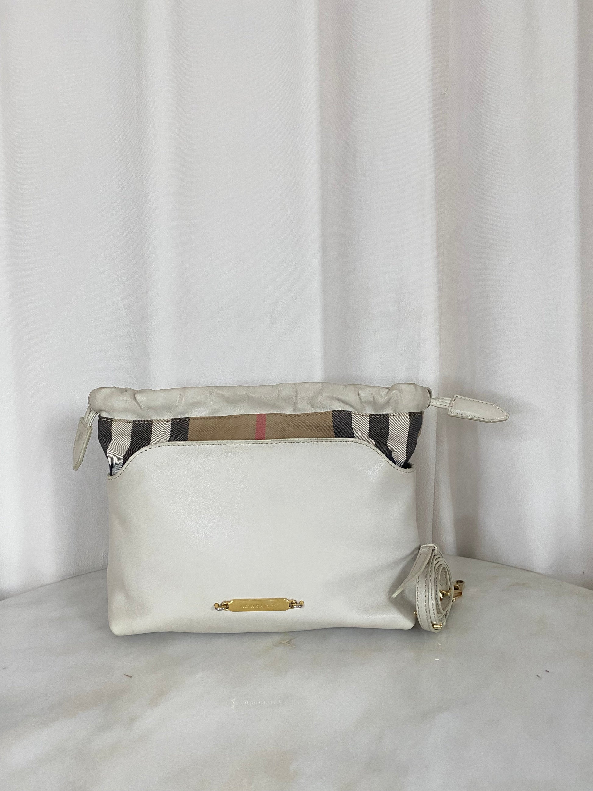 - Material: Beige Leather and and Bridle House Check Canvas Trim