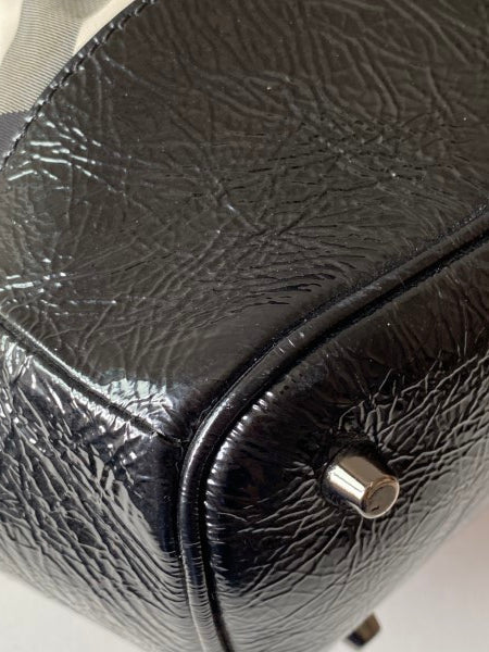 - Material: Black/White Check Nylon with Black Patent Leather Trim