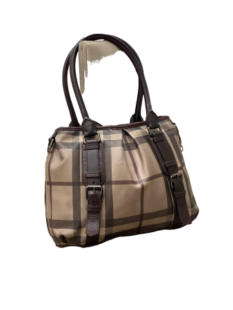 - Material: Beige House Check Nylon and Brown Leather Trim