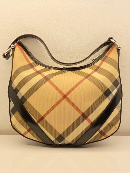 - Material: Beige Nova Check Canvas with Black Patent Leather