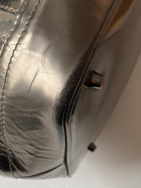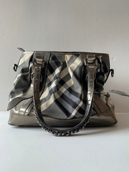 - Material: Black Beat Check Nylon and Silver Oxide Leather
