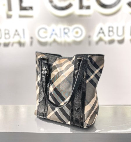 - Material: Black Beat Check Nylon and Patent Leather