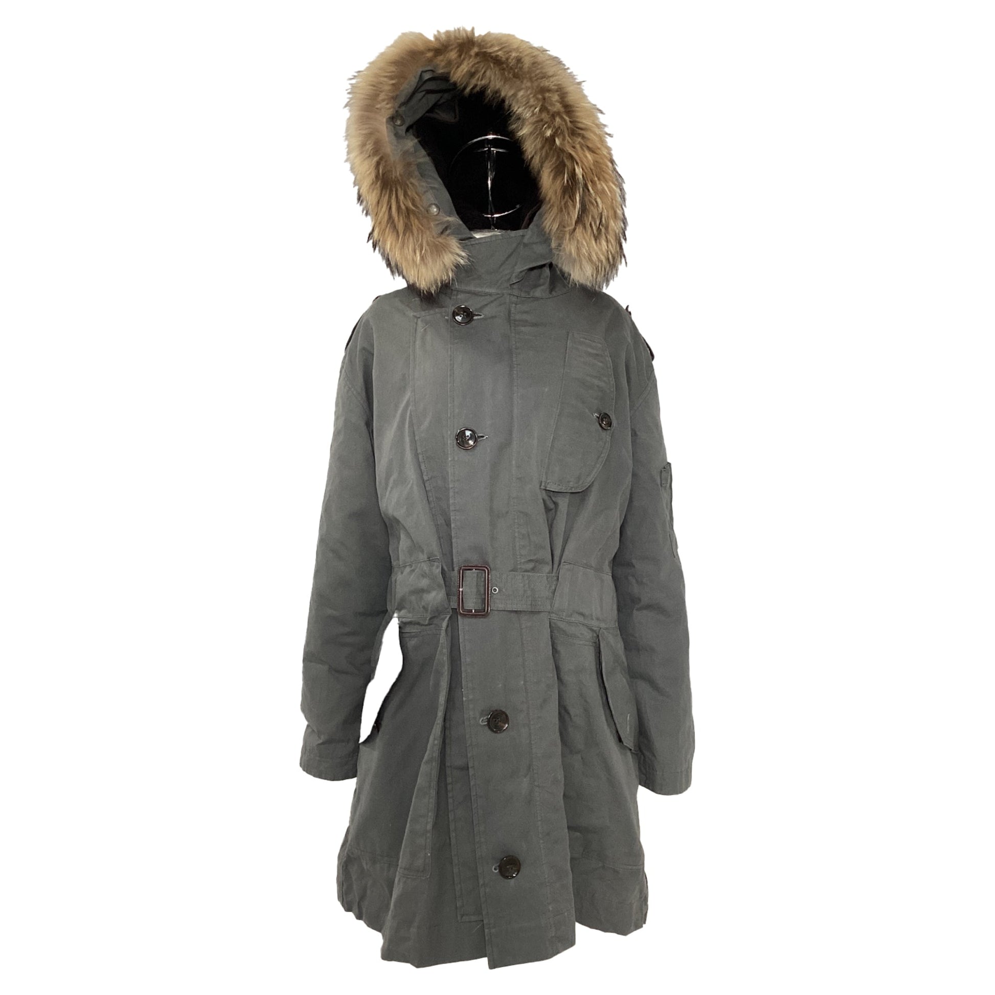 Burberry Brit Fur-lined Hooded Parka in Grey Acetate