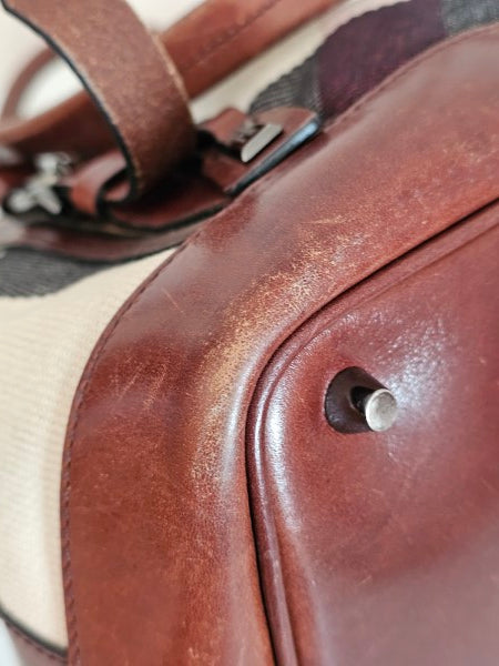 - Material: Mega Check Canvas and Brown Smooth Calfskin Leather