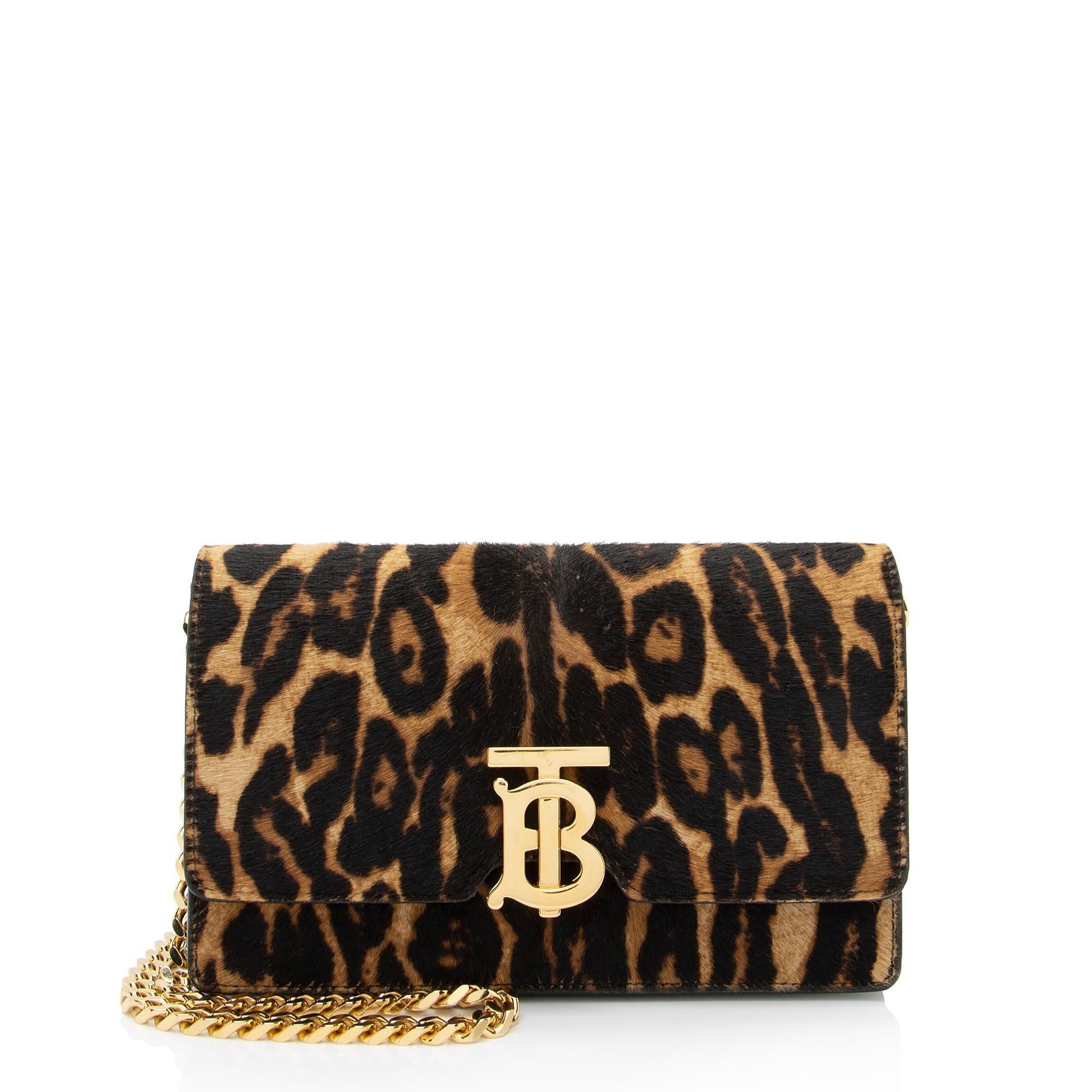Burberry Calf Hair Leopard Print TB Carrie Chain Small Crossbody (SHF-zOZJdg)