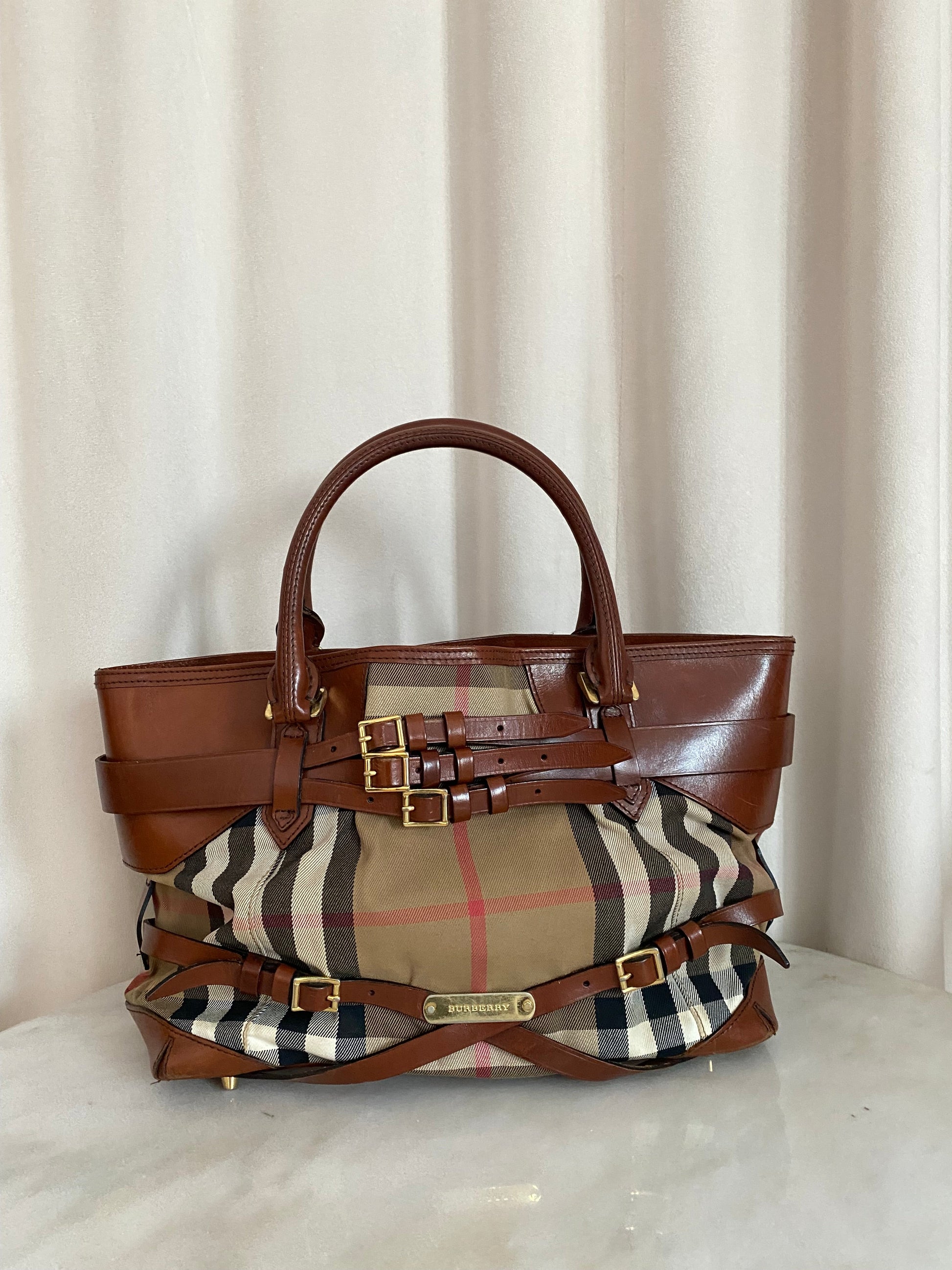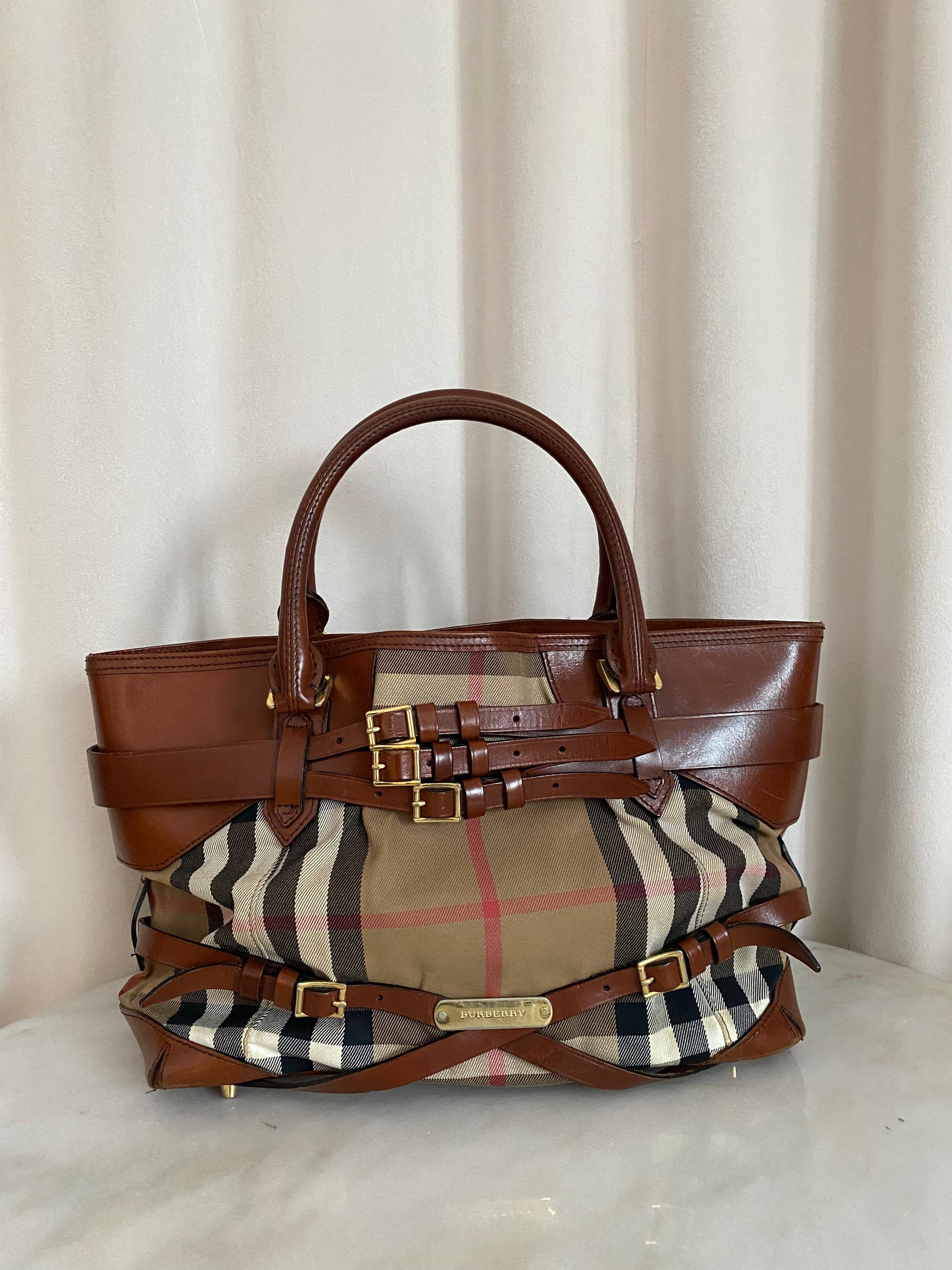 - Material: House Check Canvas with Camel Leather