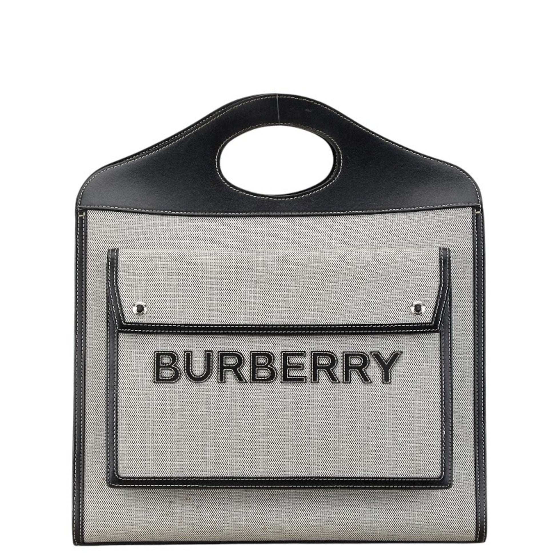 Brand - Burberry, Color - Black, White, Material - Canvas, Leather, Dimensions - 31.5cm x 36cm x 8.5cm / 12.4'' x 14.17'' x 3.34'', Condition - Rank AB. Rank AB Used - Traces of usage, scratches / dirt can be seen but generally in good condition. Before purchasing, please refer to the images for the exact condition of the item. Before purchasing, please refer to the images of the accessories included with the item. Damage Ranking - Slight Size - One Size