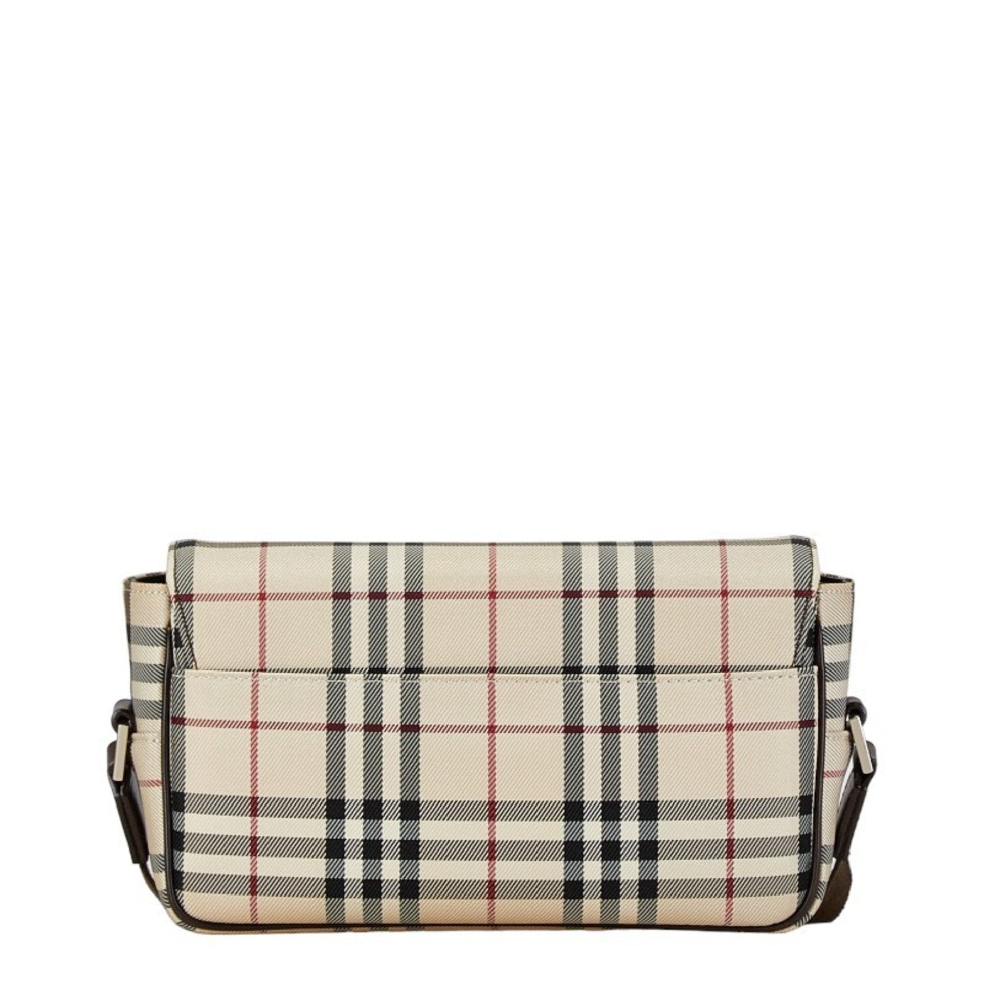Brand - Burberry, Color - Beige, Brown, Material - Canvas, Leather, Dimensions - 13cm x 26.5cm x 6cm / 5.11'' x 10.43'' x 2.36'', Condition - Rank AB. Rank AB Used - Traces of usage, scratches / dirt can be seen but generally in good condition. Before purchasing, please refer to the images for the exact condition of the item. Before purchasing, please refer to the images of the accessories included with the item. Damage Ranking - Slight Size - One Size