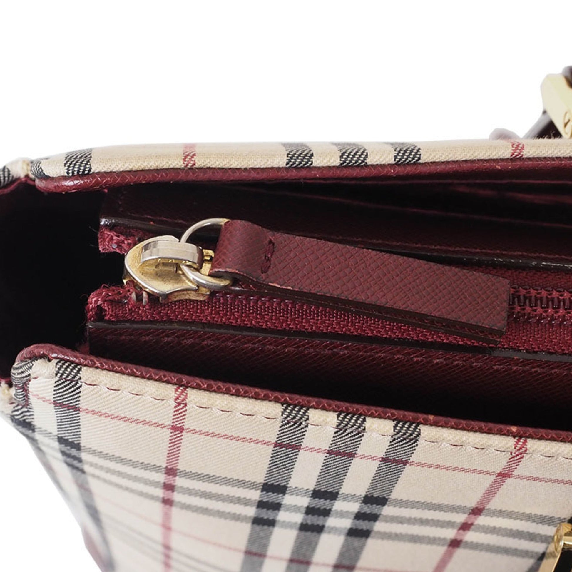 Brand - Burberry, Color - Beige, Bordeaux, Material - Canvas, Leather, Dimensions - 28cm x 37cm x 9cm / 11.02'' x 14.56'' x 3.54'', Condition - Rank AB. Rank AB Used - Traces of usage, scratches / dirt can be seen but generally in good condition. Before purchasing, please refer to the images for the exact condition of the item. Before purchasing, please refer to the images of the accessories included with the item. Damage Ranking - - Size - One Size