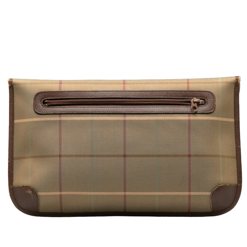 Item name : Burberry Check Canvas Leather Clutch Bag