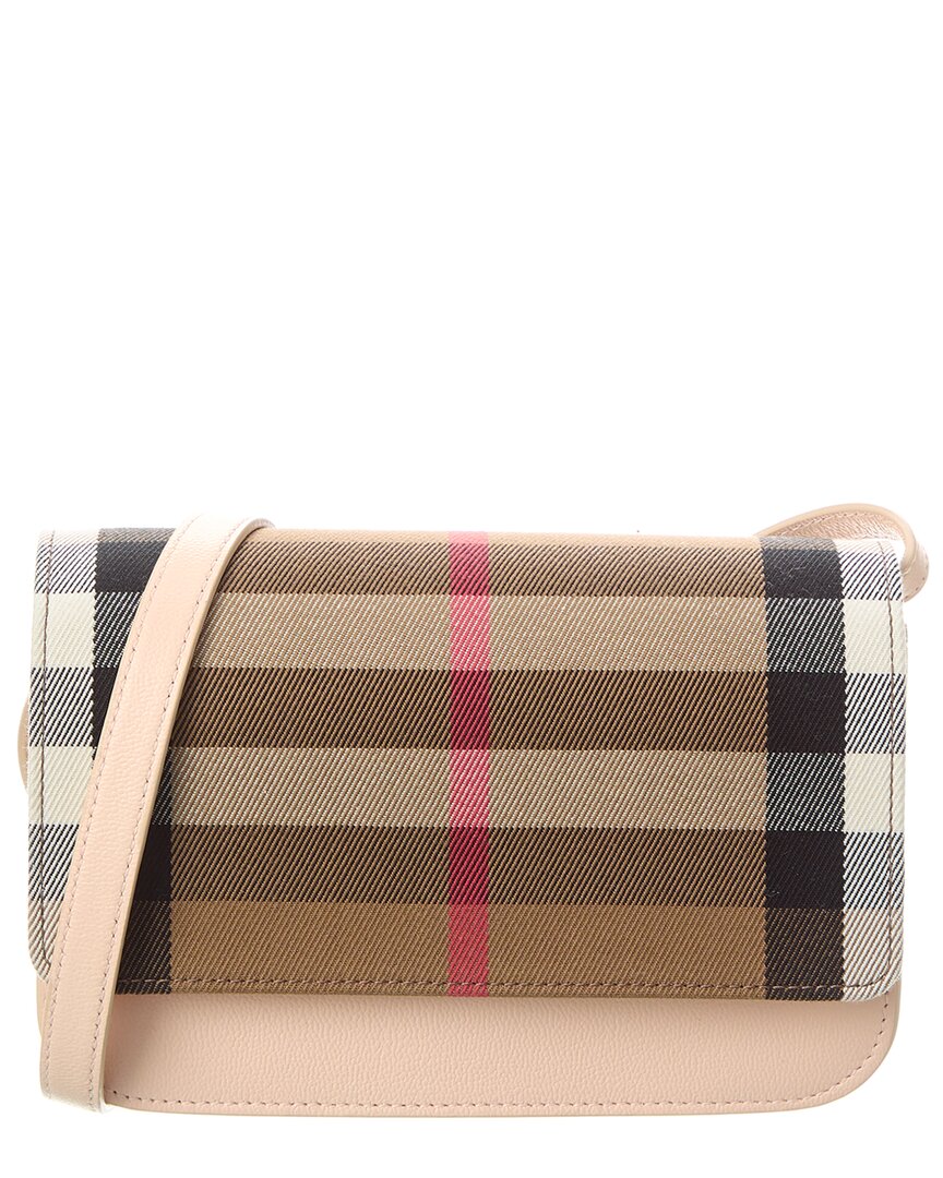 Elevate your accessory collection with the Burberry Check Canvas & Leather Shoulder Bag. This timeless piece features the iconic Archive Beige Check canvas and pale cameo leather, accented with gold-tone hardware for a luxurious touch. The interior is lined with supple leather and includes a convenient wall pocket for organizing your essentials. The adjustable shoulder strap allows for comfortable wear, with a fold-over flap and magnetic closure for added security. Measuring 7.5 inches wide by 5.5 inches high and 3 inches deep, this shoulder bag is the perfect size for everyday use. Please note that all measurements are approximate and slight variations may occur. Rest assured that this product is , sourced from trusted independent suppliers to ensure . Add a touch of British luxury to your wardrobe with the Burberry Check Canvas & Leather Shoulder Bag.