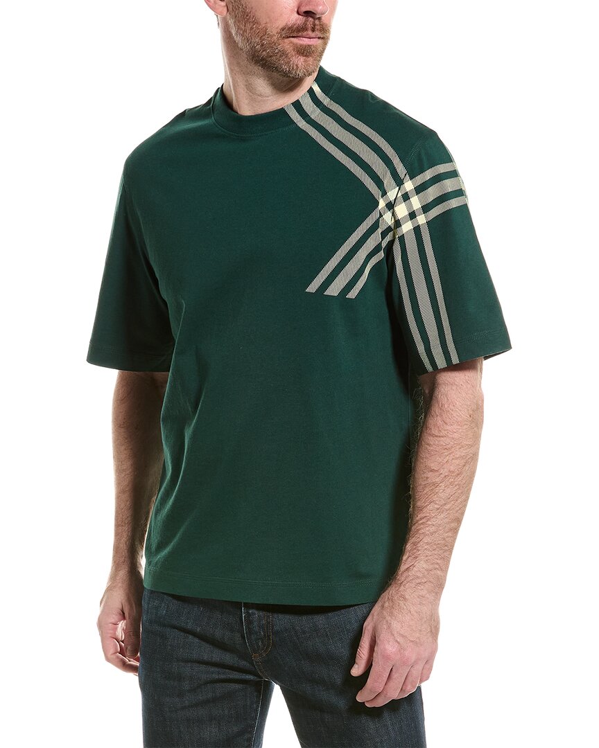 Introducing the Burberry Check Sleeve T-Shirt, a stylish and classic addition to any man's wardrobe. Crafted from 100% cotton with a crewneck and graphic design on the sleeves, this t-shirt showcases the iconic Burberry vintage check pattern. The trim is made from 97% cotton and 3% elastane for added comfort and durability. This t-shirt is approximately 29 inches from shoulder to hem and is available in sizes ranging from small to extra-large. The model is 6'2 and is wearing a size medium, but please note that measurements may vary slightly by size. Burberry is a renowned luxury brand with a rich history dating back to 1856. Known for their iconic patterns and materials, Burberry pieces are timeless and always in style. This Burberry Check Sleeve T-Shirt is machine washable and imported, ensuring quality and . When you purchase from us, you can trust that our products are and sourced from trusted independent suppliers. Add a touch of British influence to your wardrobe with this Burberry t-shirt.