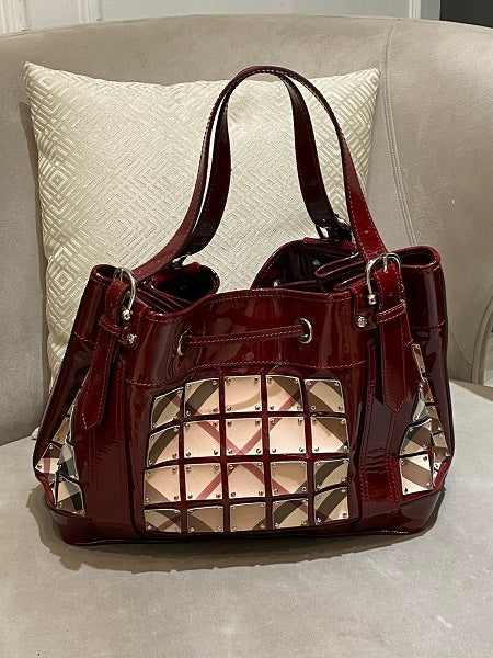 - Material: Dark Red Patent Leather with Nova Check Geometrical Patterned Fabric