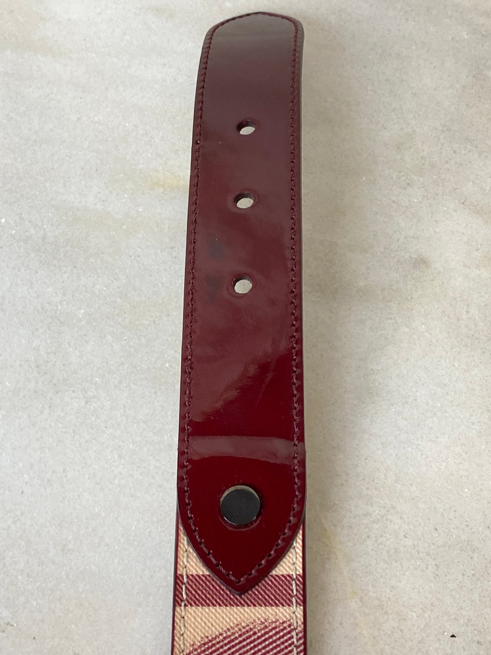 - Material: House Check Canvas and Dark Red Vernis Leather