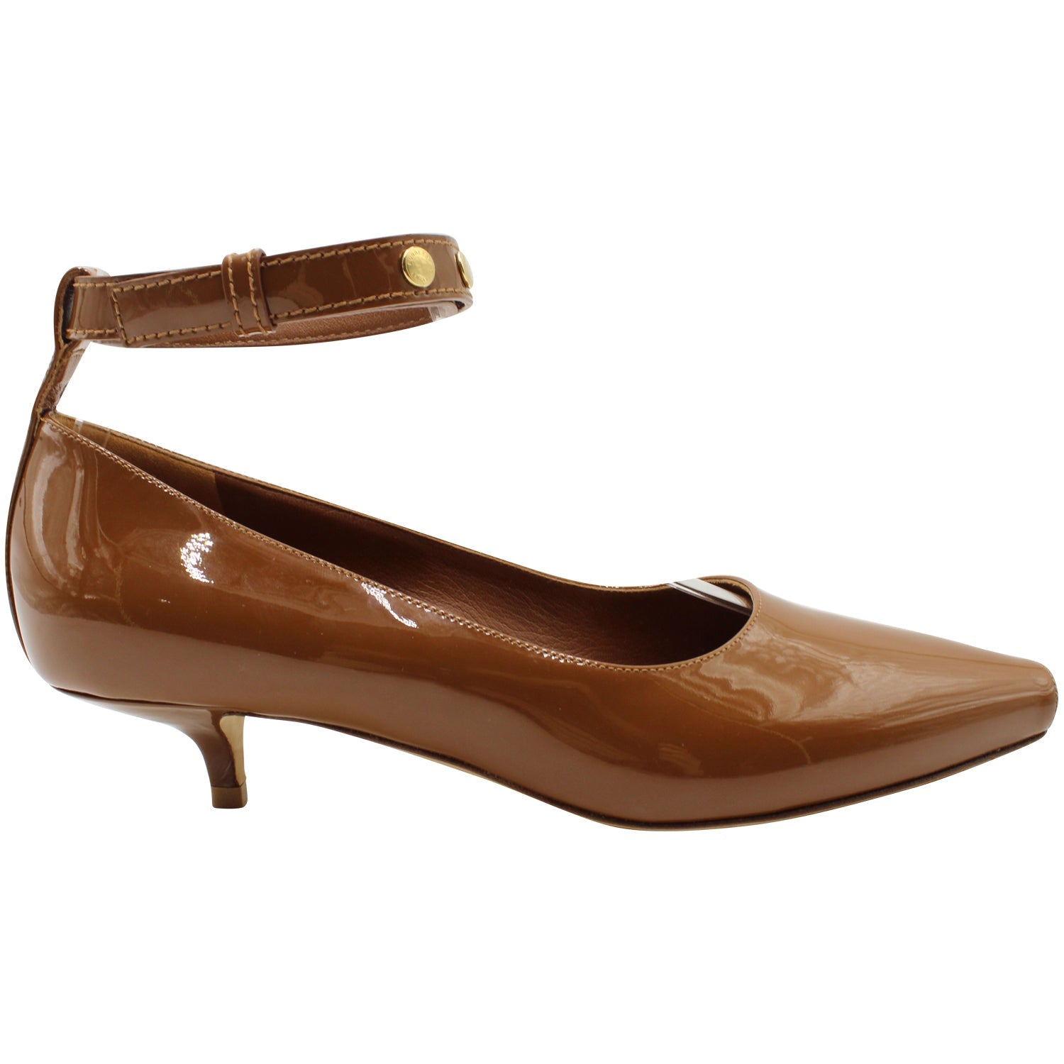 Burberry's kitten heel pumps also come in a summery ankle cuff silhouette. This pair has been made in from patent leather with the style's signature open toe. This brown hue will work with most outfits.Burberry Dill Kitten Heel Ankle Cuff Pumps in Brown Patent Leather Material - Patent LeatherColor - BrownSize - EU36.5/US6.5Condition - excellentSign of wear - Used soles, light creases on inner leatherSKU - 143005