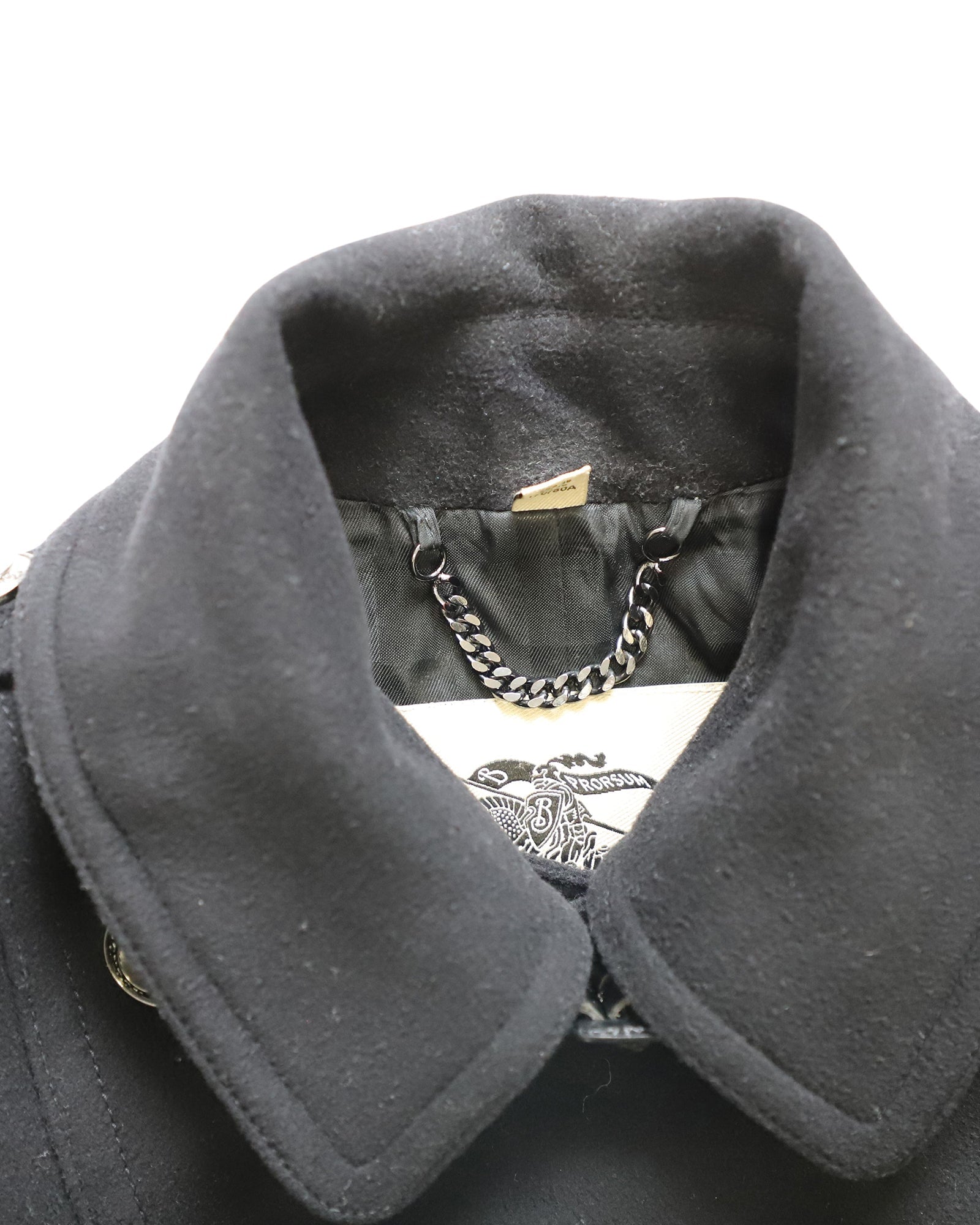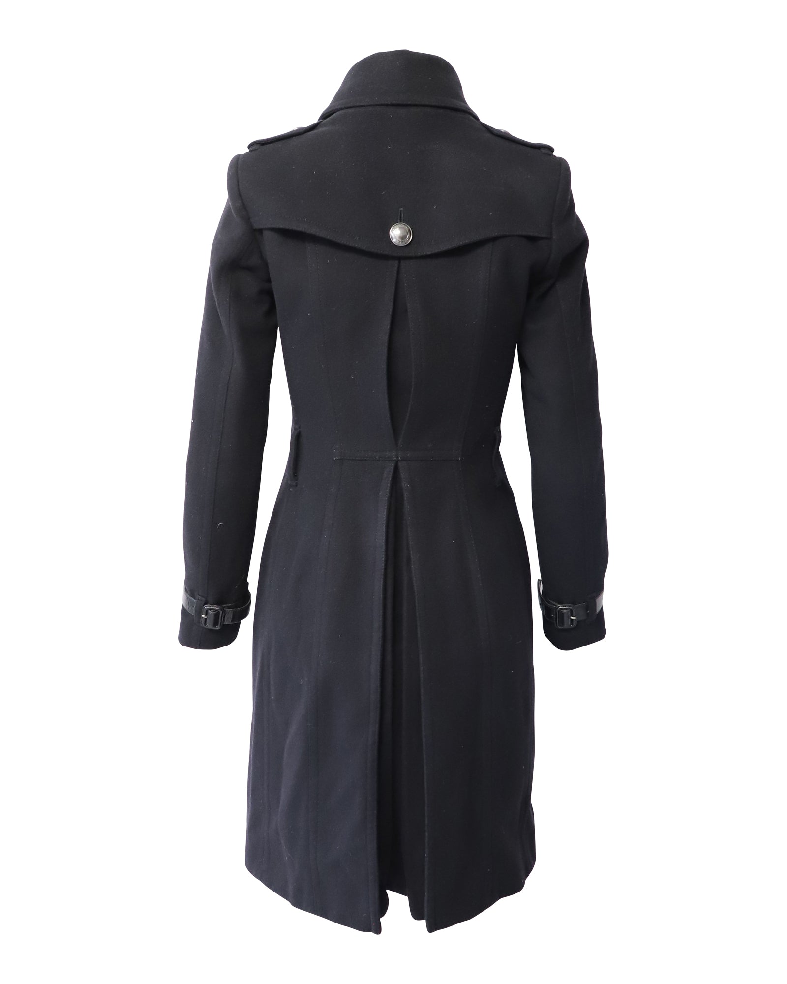 Burberry Double-Breasted Trench Coat with Leather Detail in Black Wool