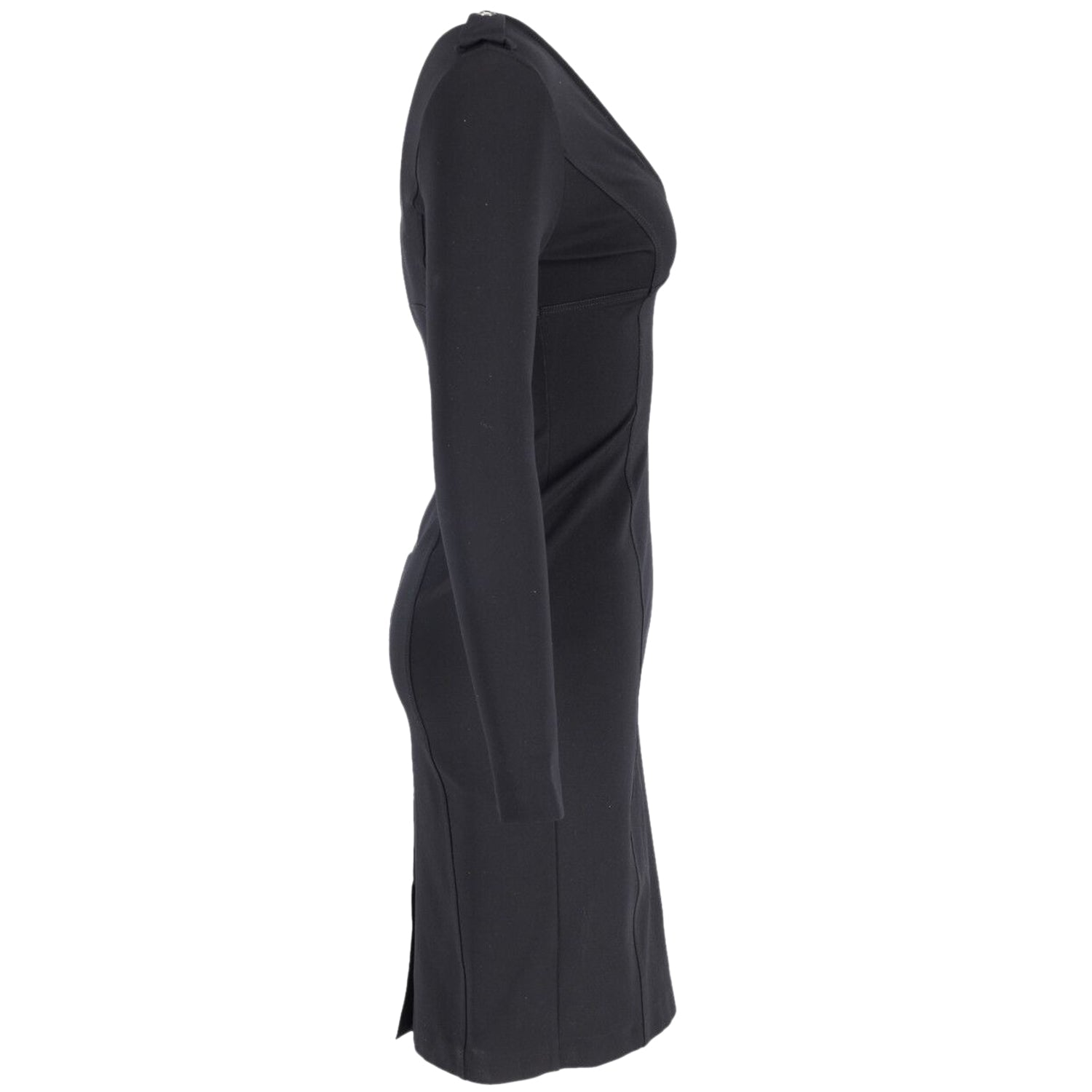 Look absolutely gorgeous in this Burberry dress. It features a V-neckline, long sleeves and it has a body fitting silhouette to show off your curves. It is detailed with Epaulette on the shoulder for a true Burberry signature. Complete the elegant look with pumps. Burberry Dress with Epaulette in Black AcetateCondition - Very GoodSign of wear - Few visible lint marks, removable with lint rollerMaterial - Cellulose fibre | Acetate Color - blackSize - UK8/US6SKU - 151746