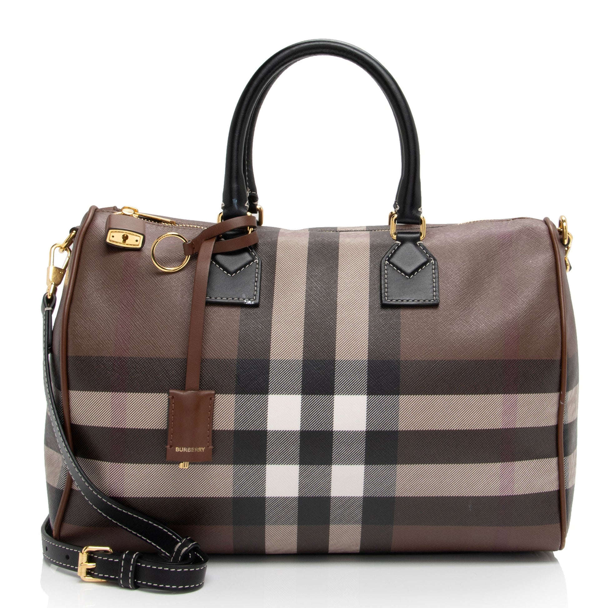 Burberry E-Canvas House Check Medium Bowling Bag (SHF-UWSlxx)