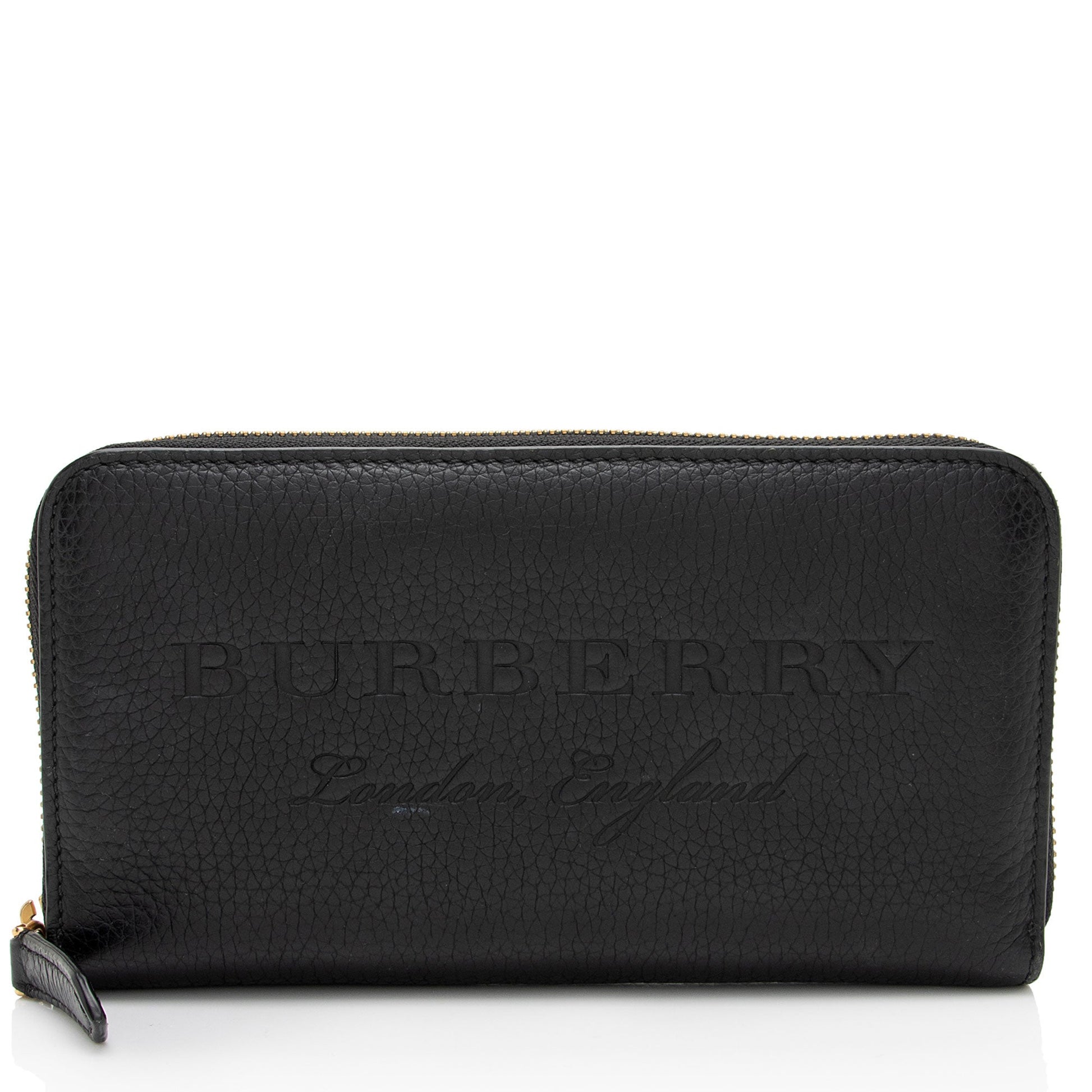 Burberry Embossed Grainy Calfskin Zip Around Wallet (SHF-qMp2HV)