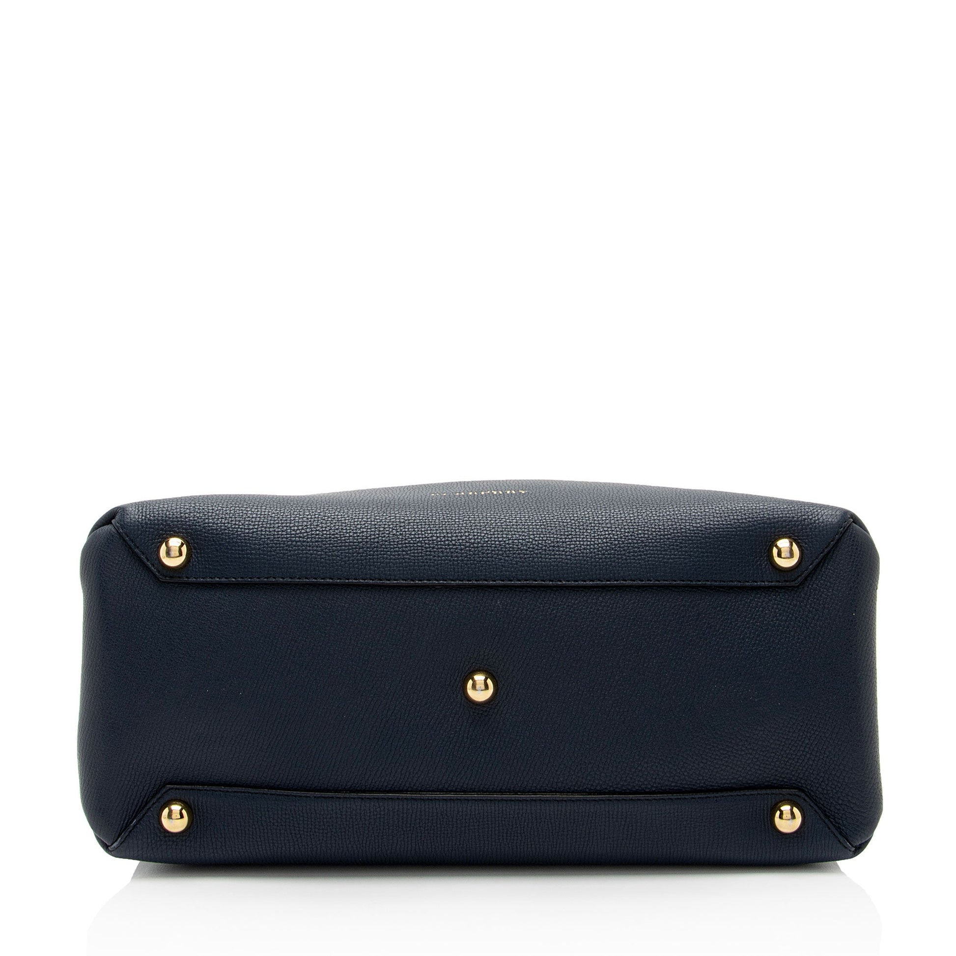 Condition Notes: Light scuffs to exterior bottom corners. Minor creasing to exterior. Light cracking throughout exterior top casing. Light surface scratches to hardware. Minor marks and wear throughout interior. Please note: Read product details carefully. This is a dark blue tote.