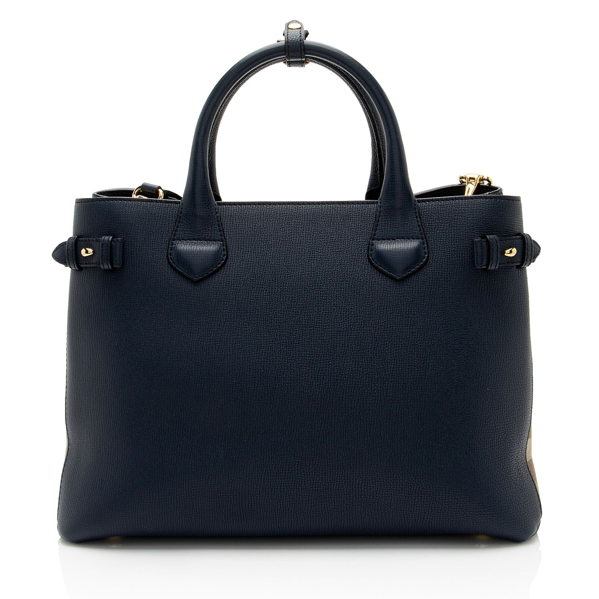 Burberry House Check Leather Banner Medium Tote (SHF-8z38Ea)