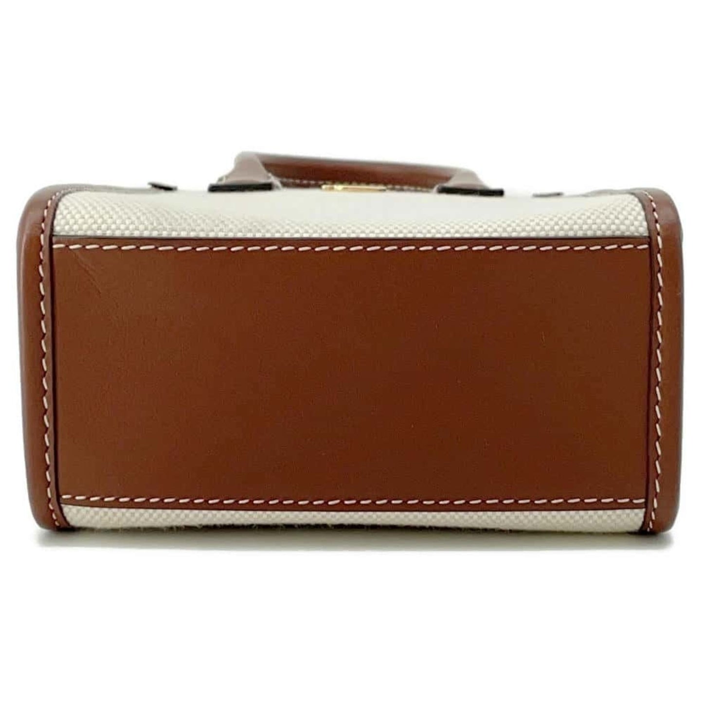 Brand - Burberry, Color - Brown, Ivory, Material - Canvas, Leather, Dimensions - 17.5cm x 13cm x 6.5cm / 6.88'' x 5.11'' x 2.55'', Condition - Rank A. Rank A Used - A few traces of usage, some scratches / dirt can be seen but overall in very good condition. Before purchasing, please refer to the images for the exact condition of the item. Before purchasing, please refer to the images of the accessories included with the item. Bag Common Damage Scratch - Insignificant Size - One Size
