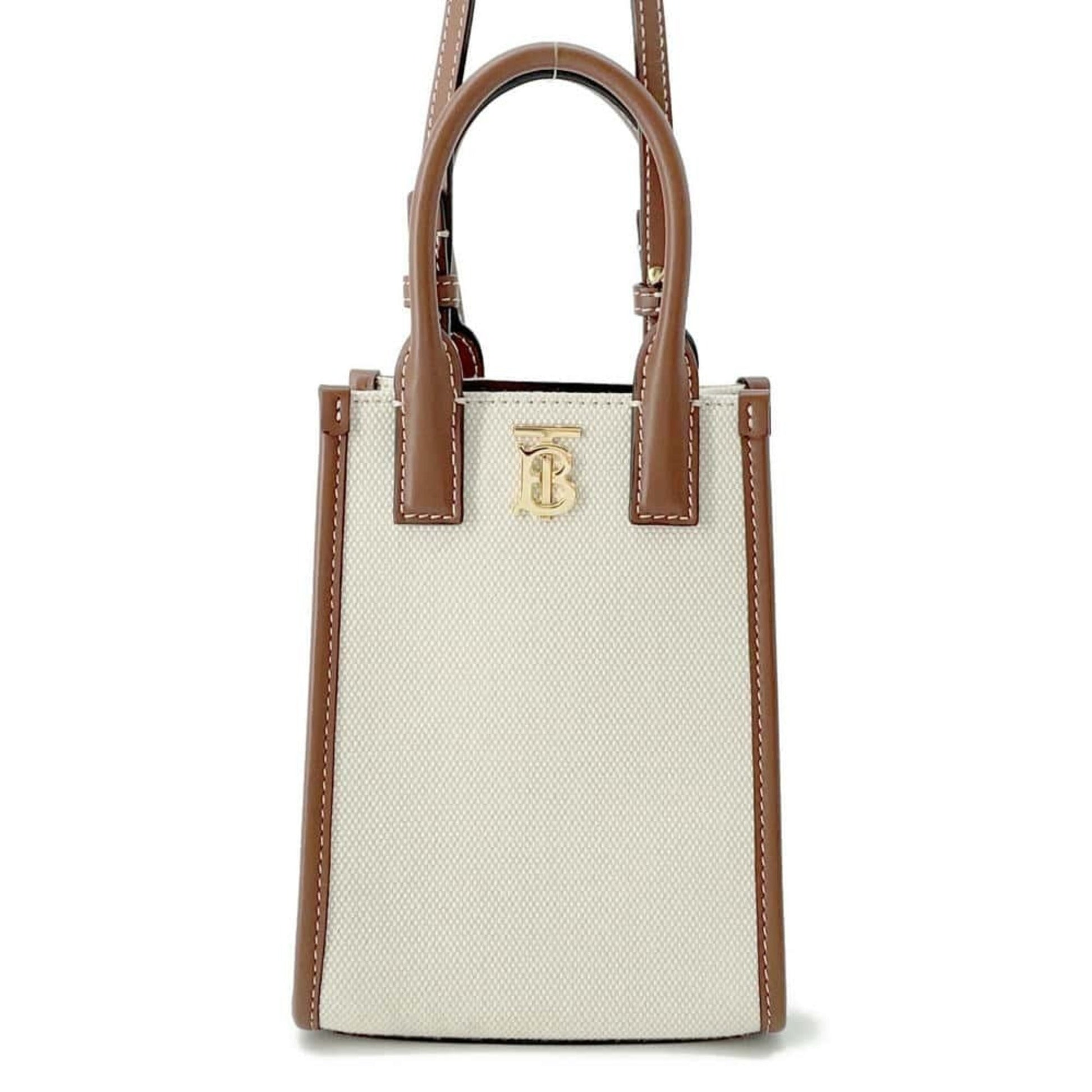 Burberry ivory Canvas Leather Shoulder Bag Tote Bag ()