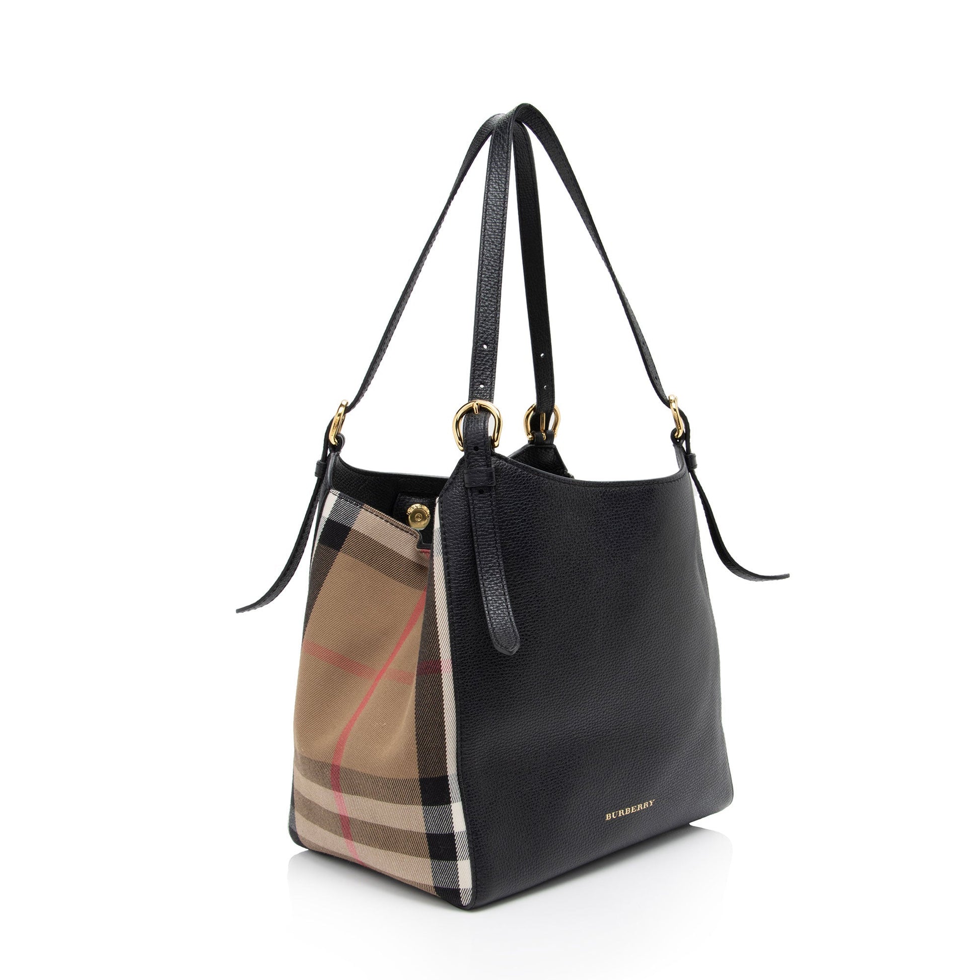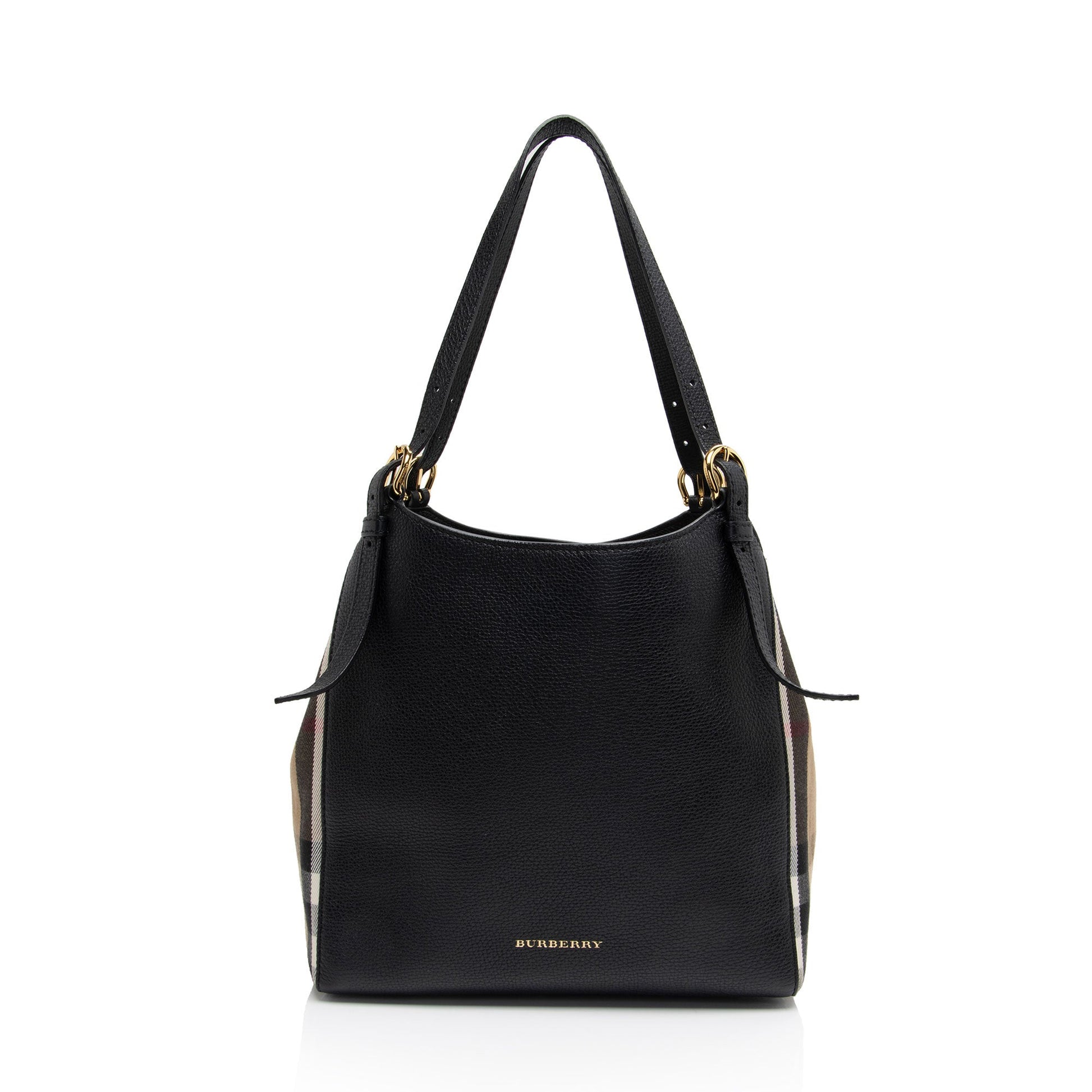 Burberry Leather House Check Derby Canterbury Small Tote (SHF-ANV3FD)