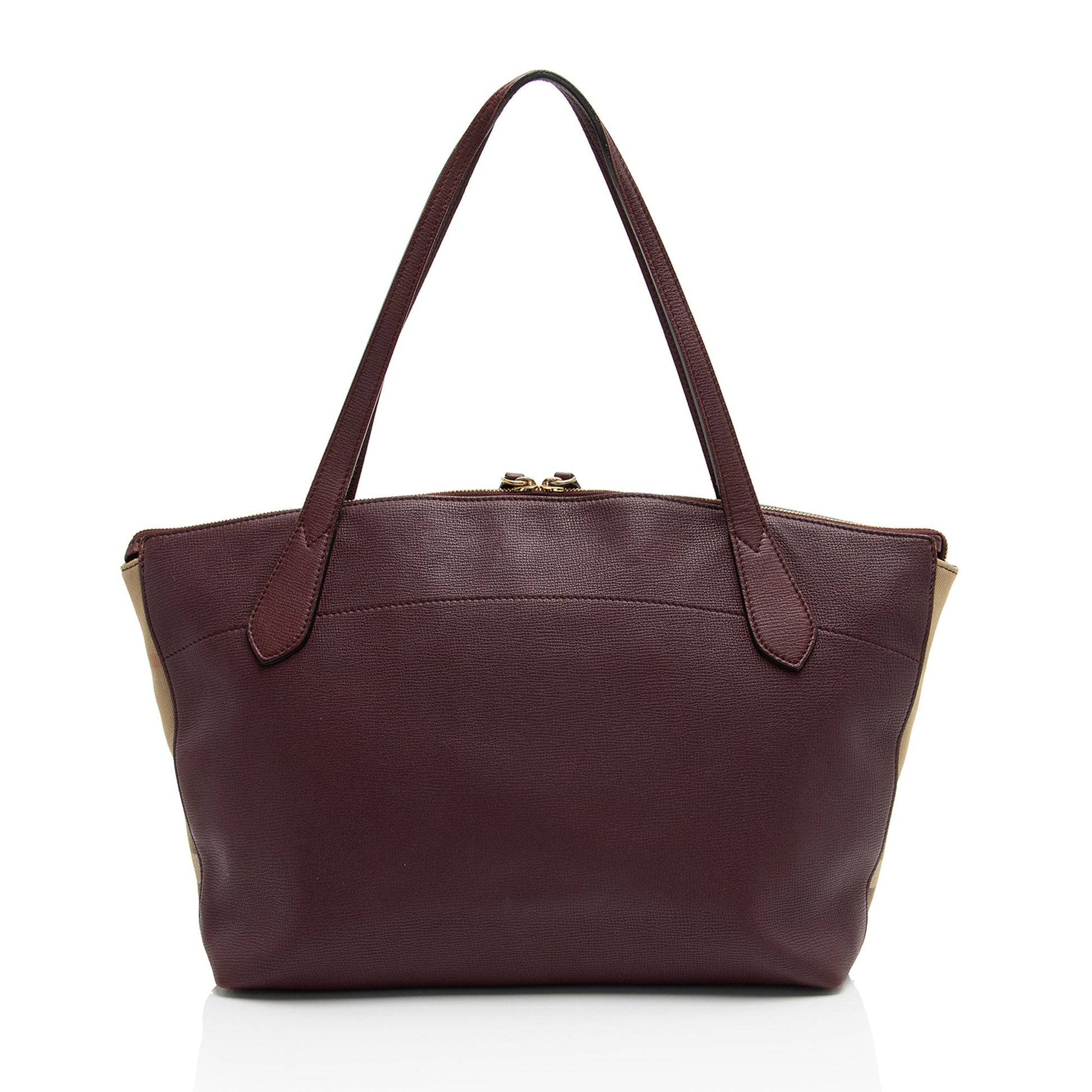 Burberry Leather House Check Derby Welburn Small Tote (SHF-SRg97n)