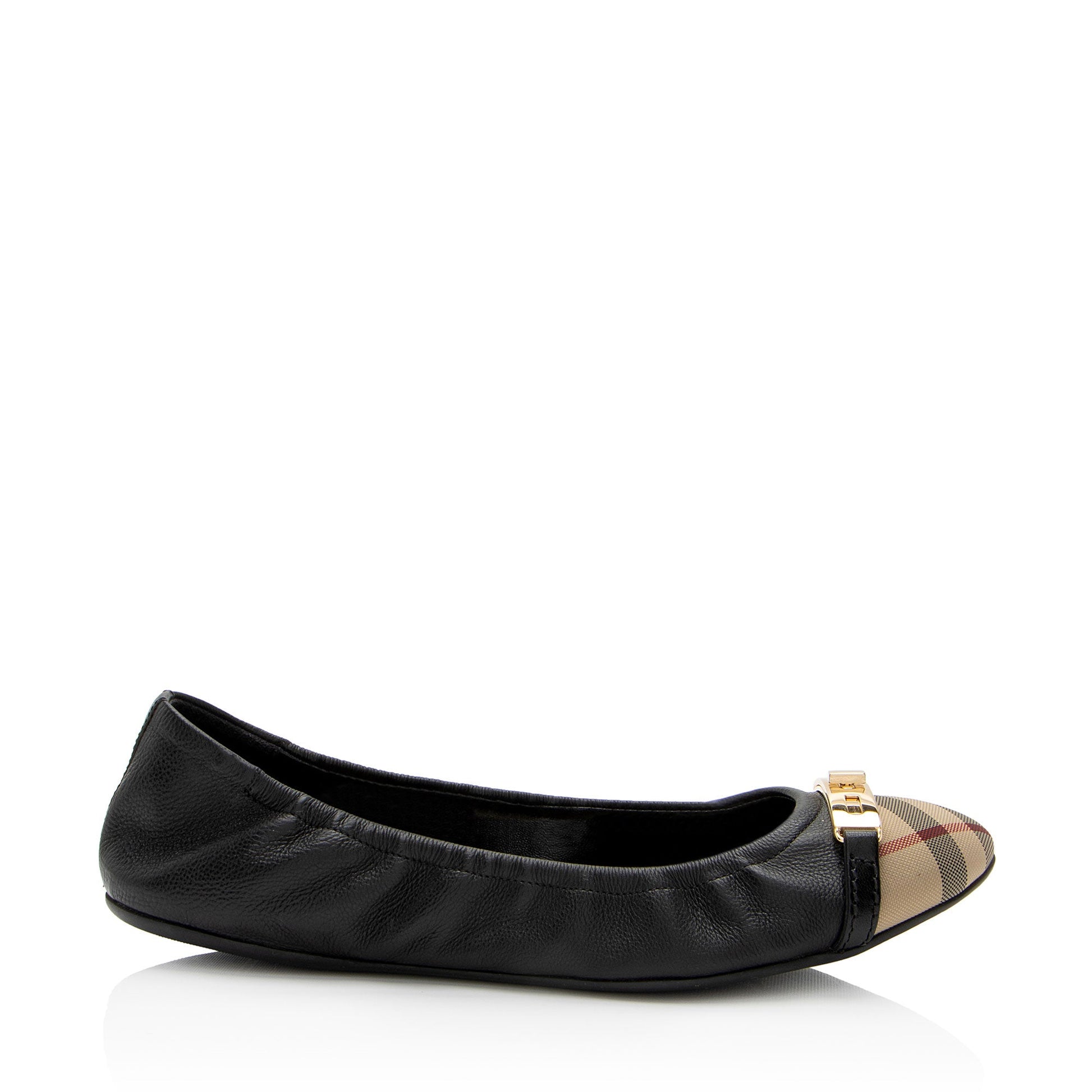Burberry Leather Nova Check Cap Toe Scrunch Ballet Flats - Size 9 / 39 (SHF-I5qjdB)