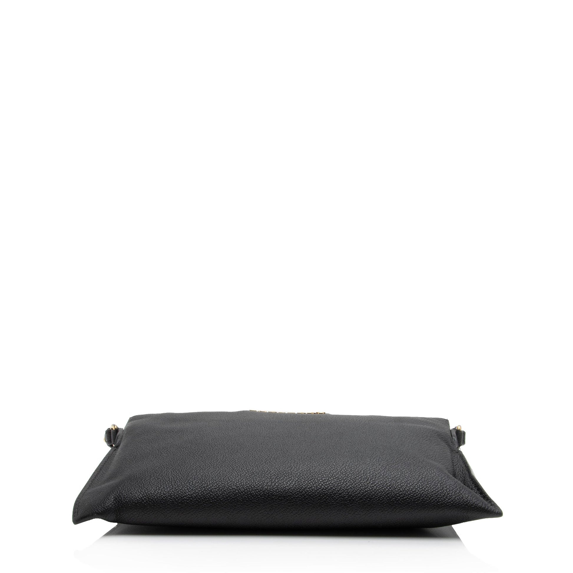 Condition Notes: Light scuffs to exterior bottom corners. Minor creasing and light scuffs throughout exterior. Cracking and wear to shoulder strap base casing. Surface scratches and tarnishing to hardware. Marks and light darkening throughout interior.