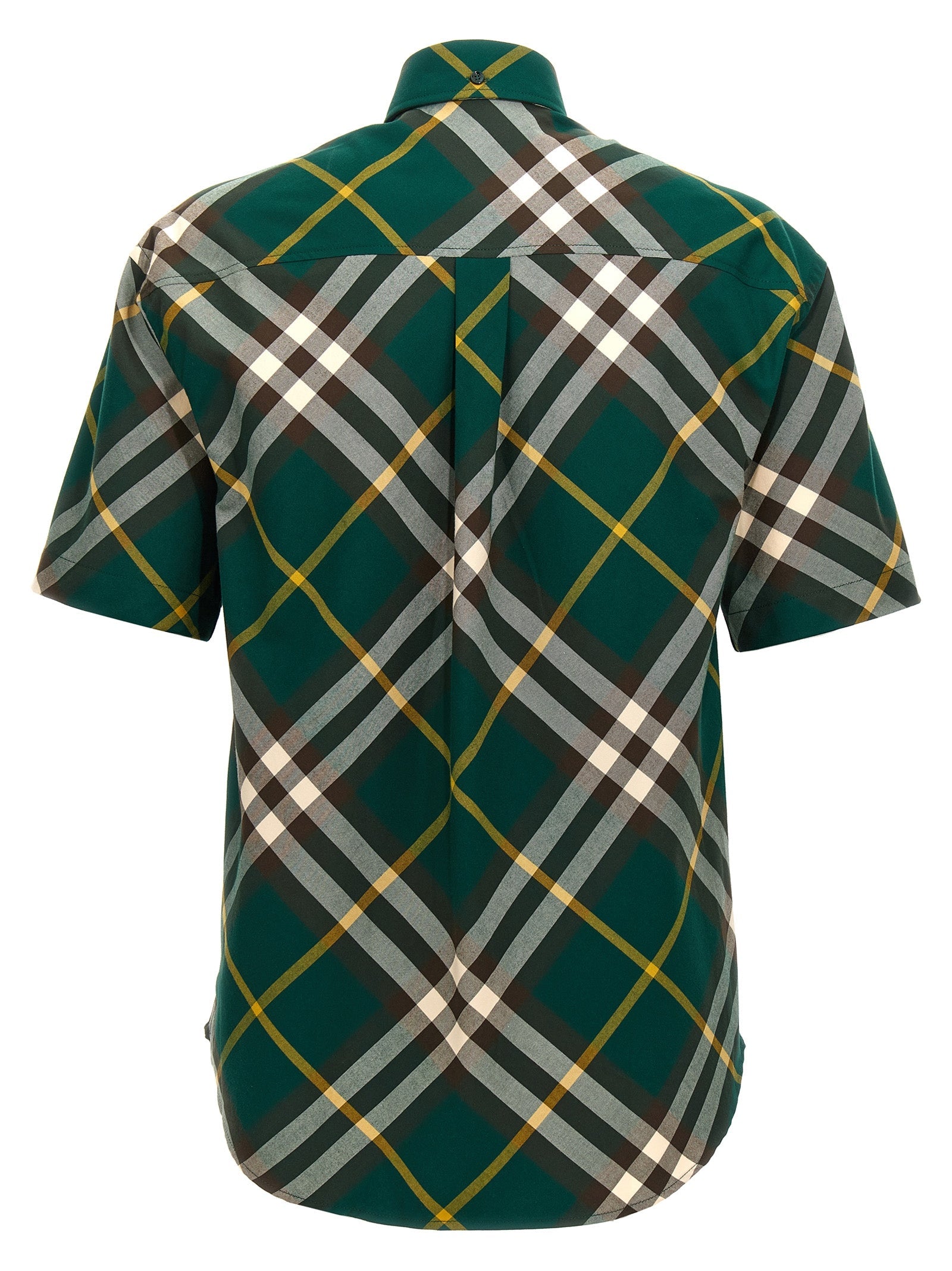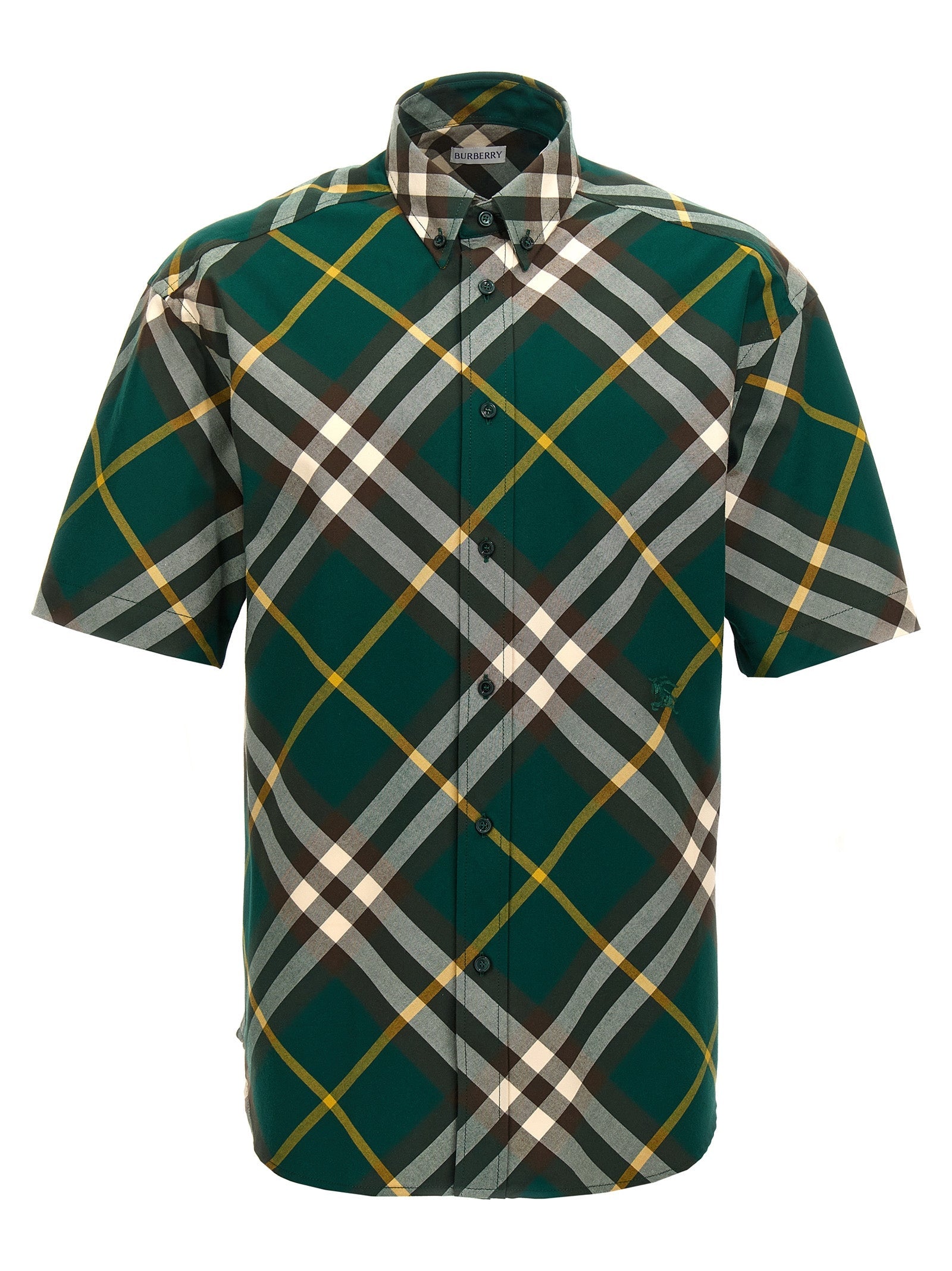Check print cotton shirt, front logo embroidery, button closure, short sleeves.