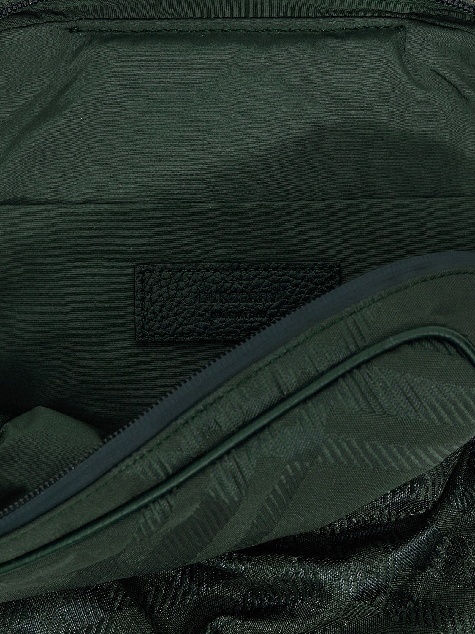 Check fabric shoulder strap, zip closure, adjustable shoulder strap.