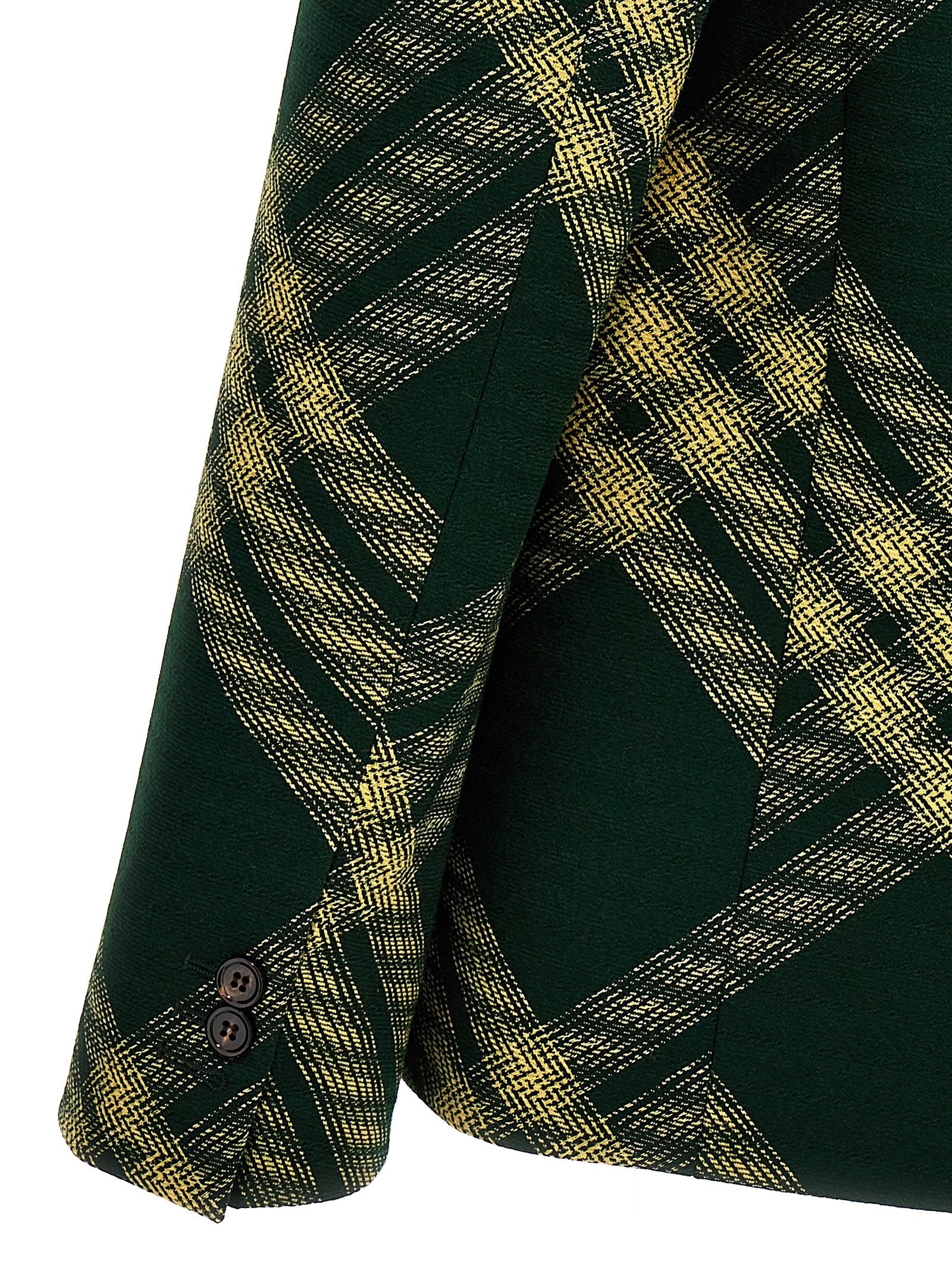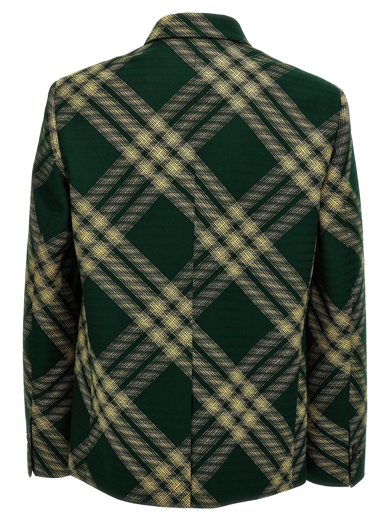 Tailored wool blazer with check pattern, single-breasted odello with button closure, side pockets, pointed collar.
