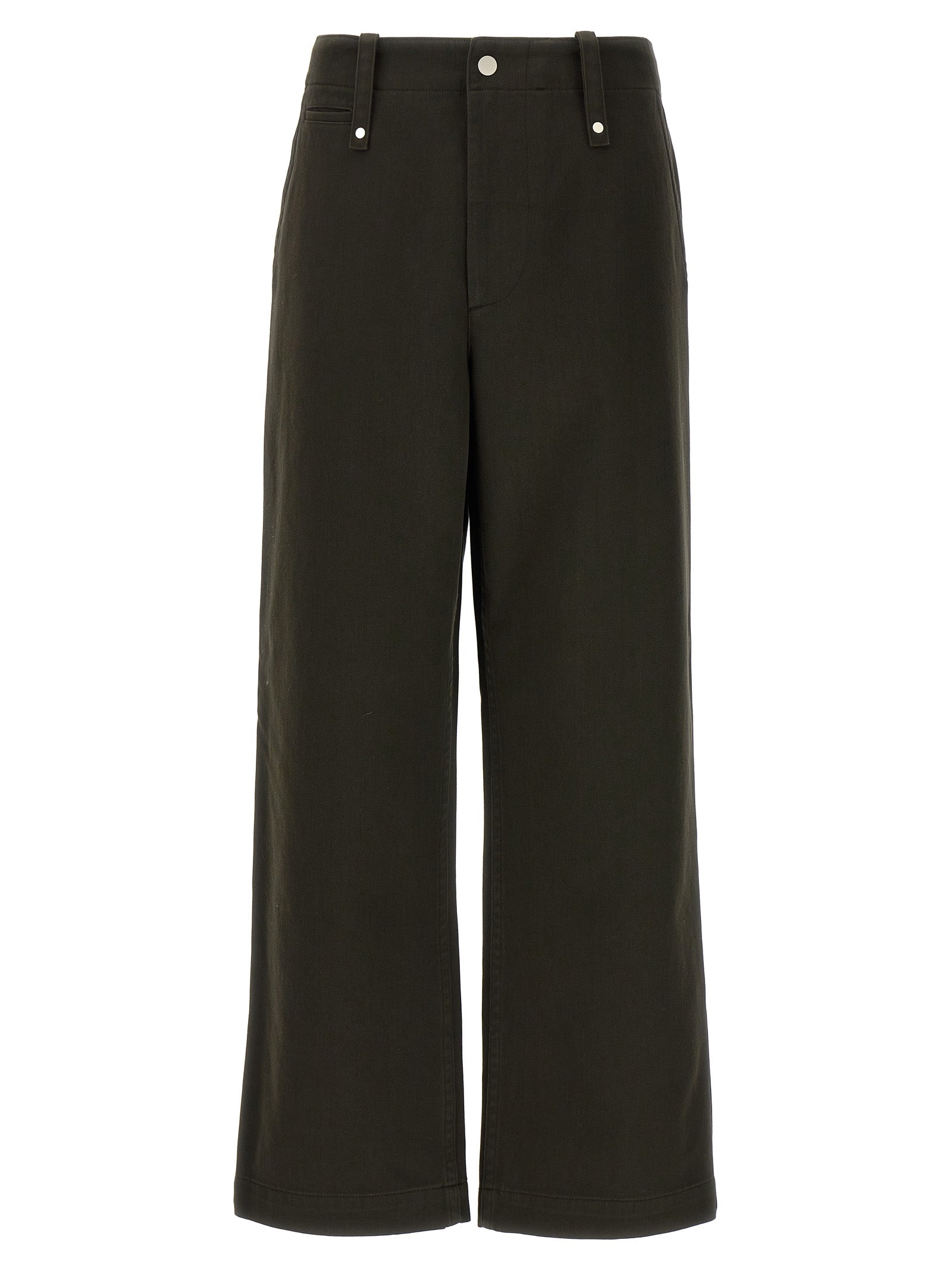 Cotton gabardine pants, straight leg, high waist with high loops.