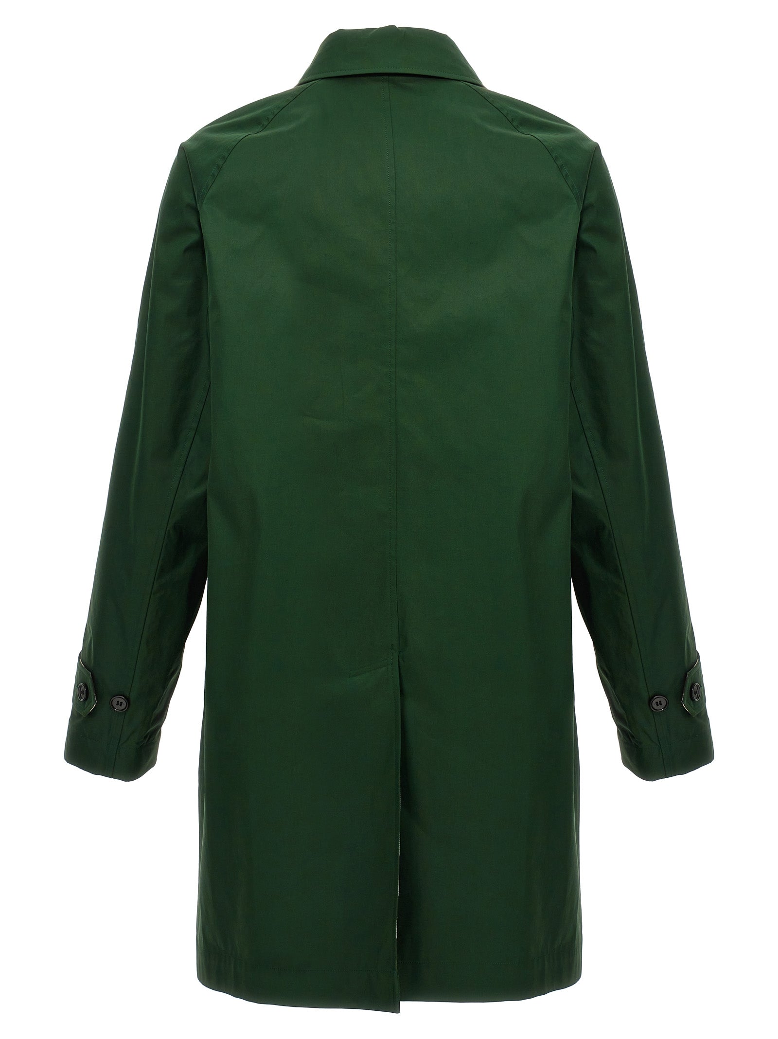 Medium reversible car coat in rainproof cotton gabardine Check print or solid color, button closure, pockets, long sleeves, back split.