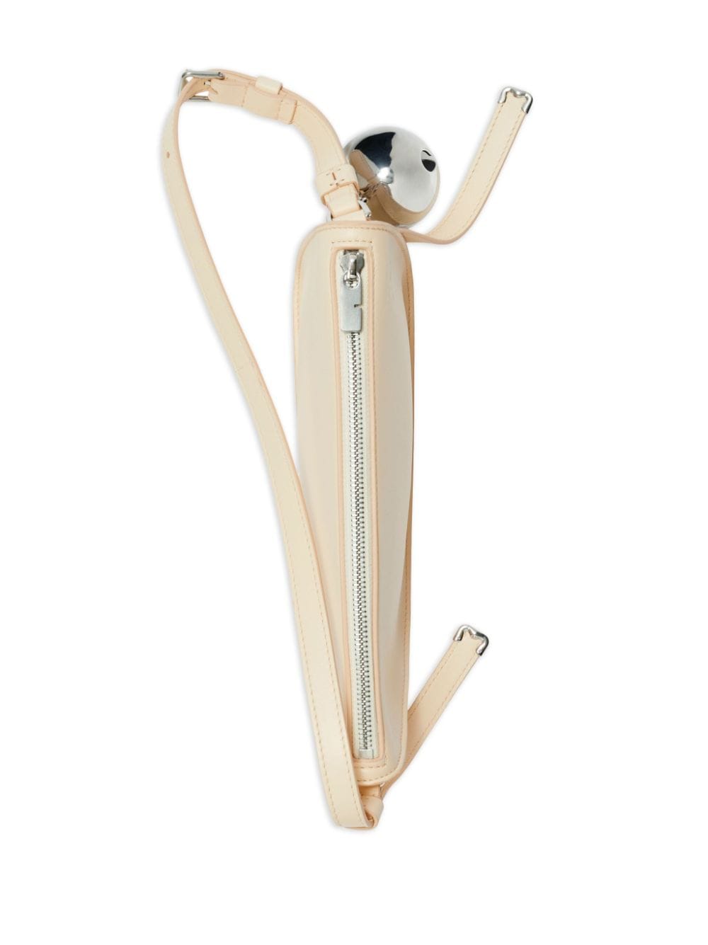 light beige lambskin signature Equestrian Knight motif silver-tone hardware bell charm top zip fastening adjustable shoulder strap main compartment