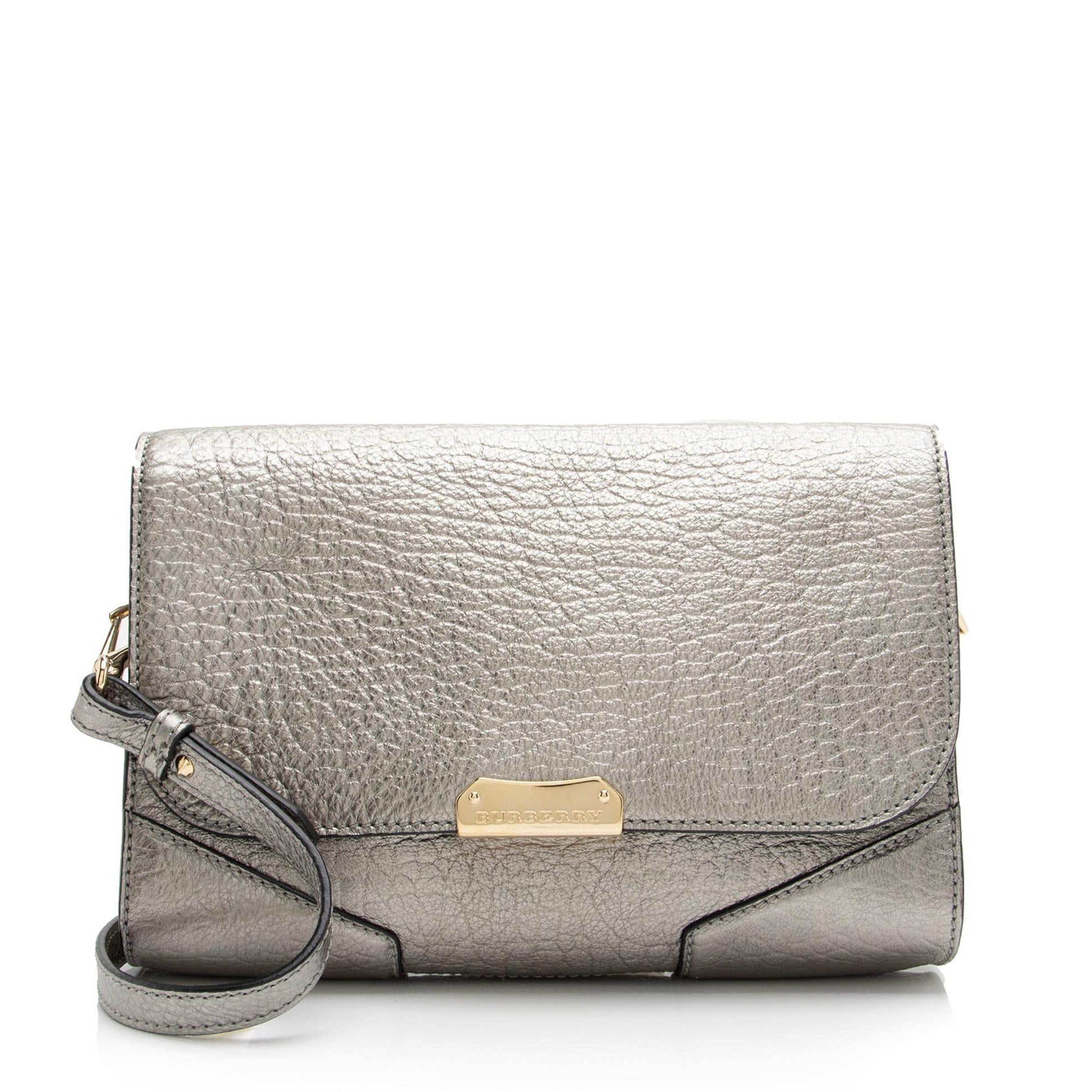 Burberry Metallic Grained Leather Abbott Small Crossbody Bag (SHF-23382)