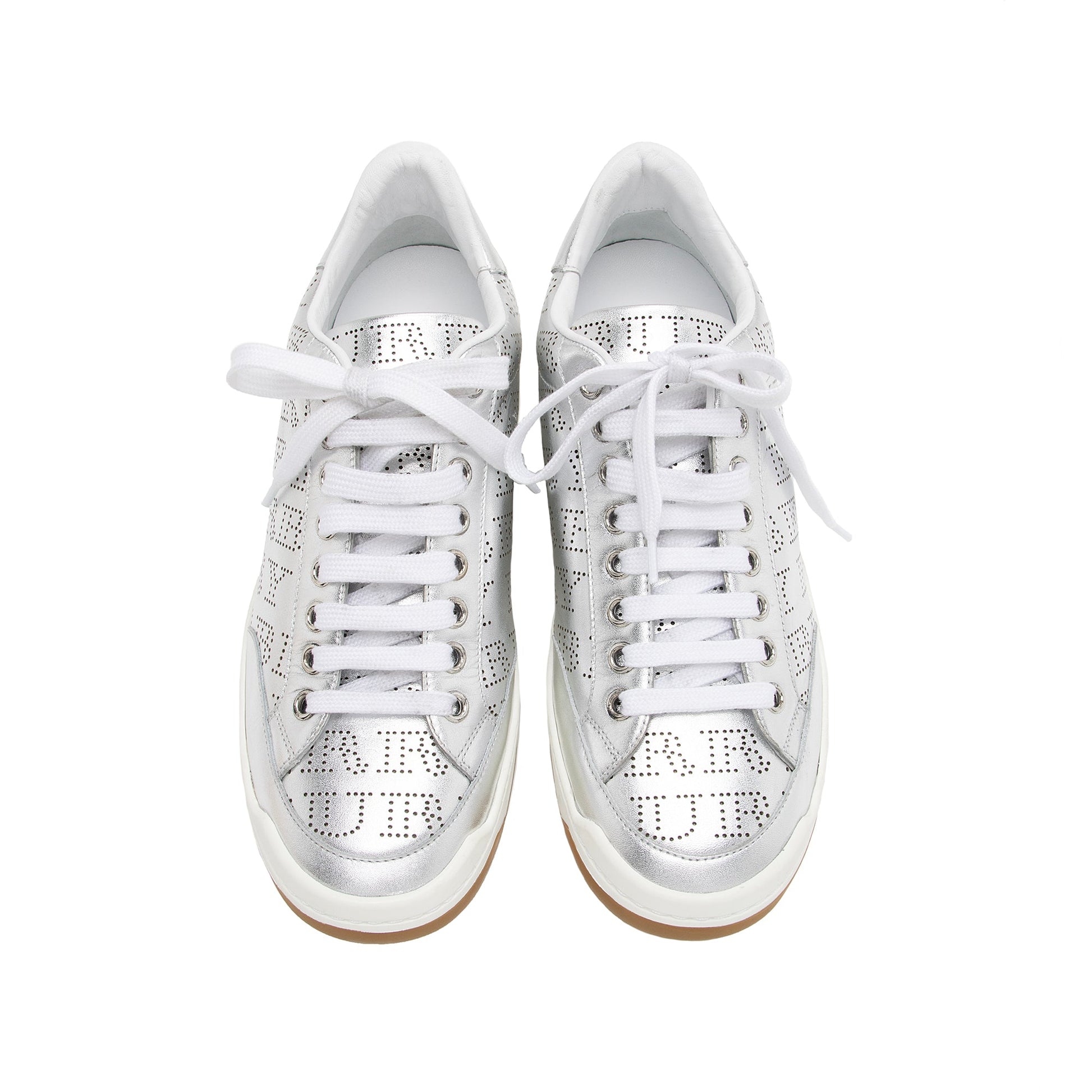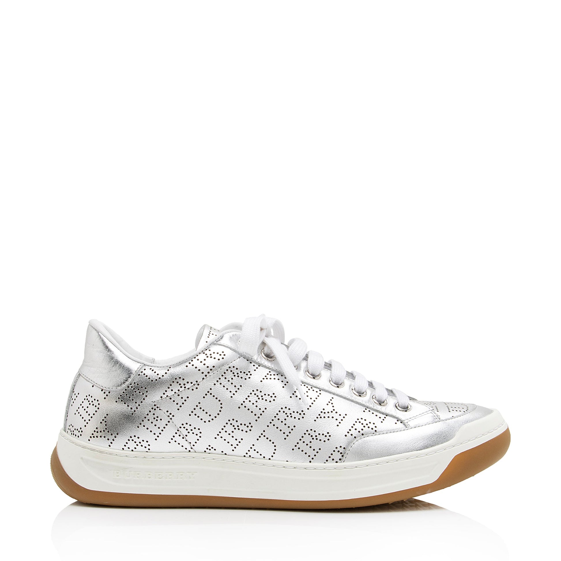 Burberry Metallic Leather Perforated Allover Logo Timsbury Sneakers - Size 8 / 38 (SHF-gcphNz)
