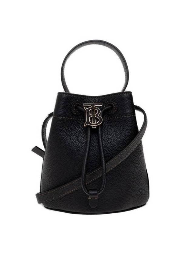 Burberry Mini Grainy Leather TB Bucket Bag Black