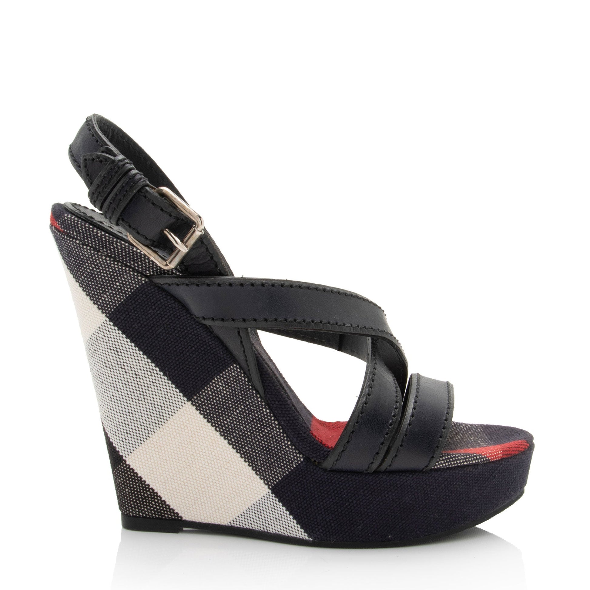 Burberry Nova Check Wedge Sandals - Size 8 / 38 (SHF-sxYHVX)