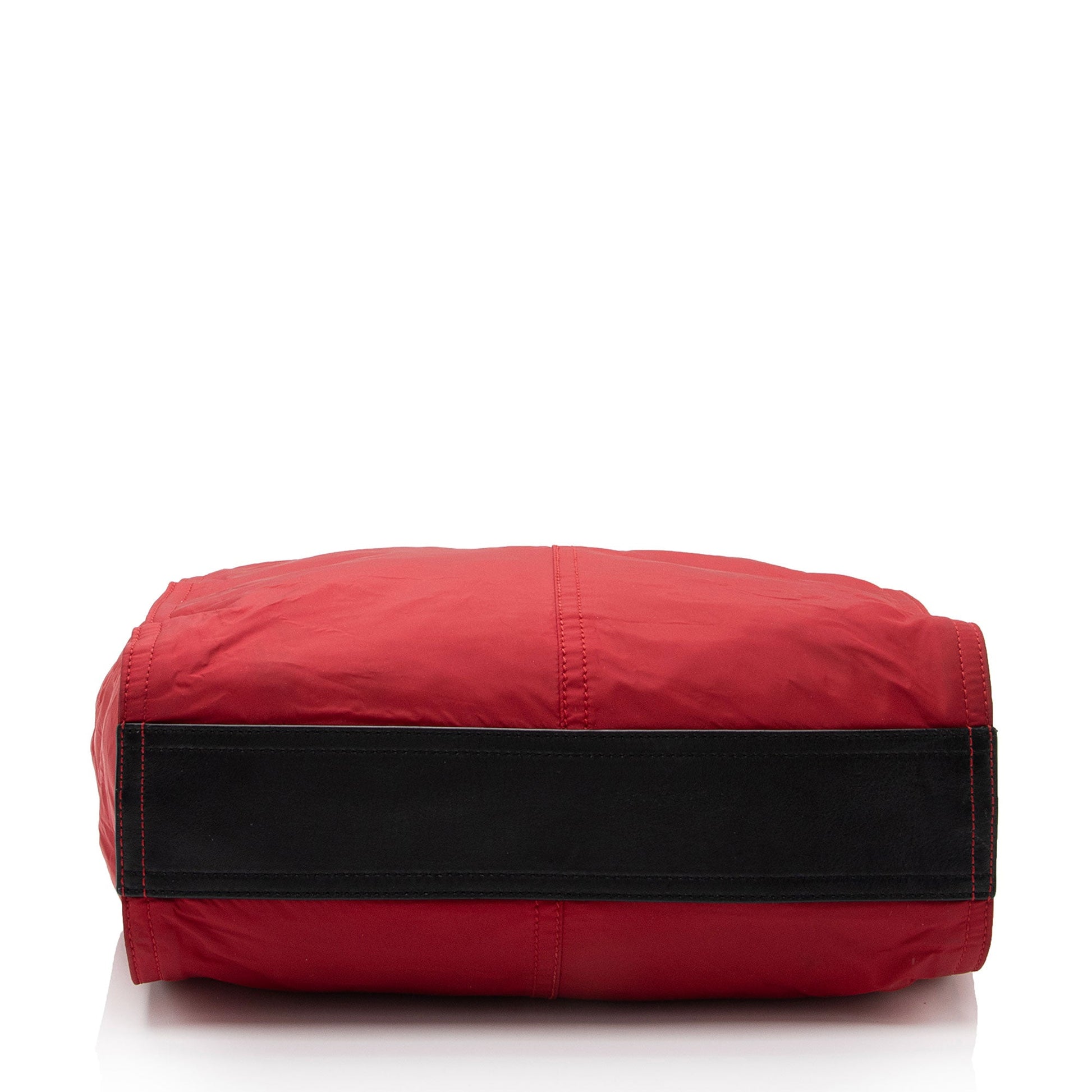 Condition Notes: Visible creasing and light marks throughout exterior nylon. Light creasing throughout exterior leather trim and handles. Minor surface scratches to hardware. Marks throughout interior.