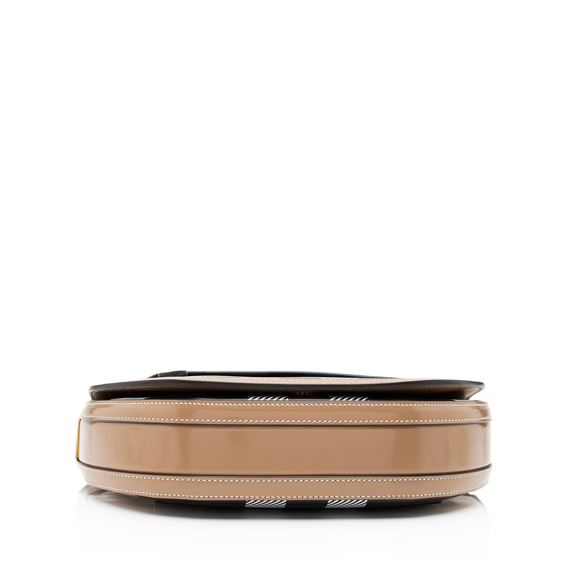 Condition Notes: Minor scuffs throughout exterior and hardware. Minor warping and creasing throughout shoulder strap.
