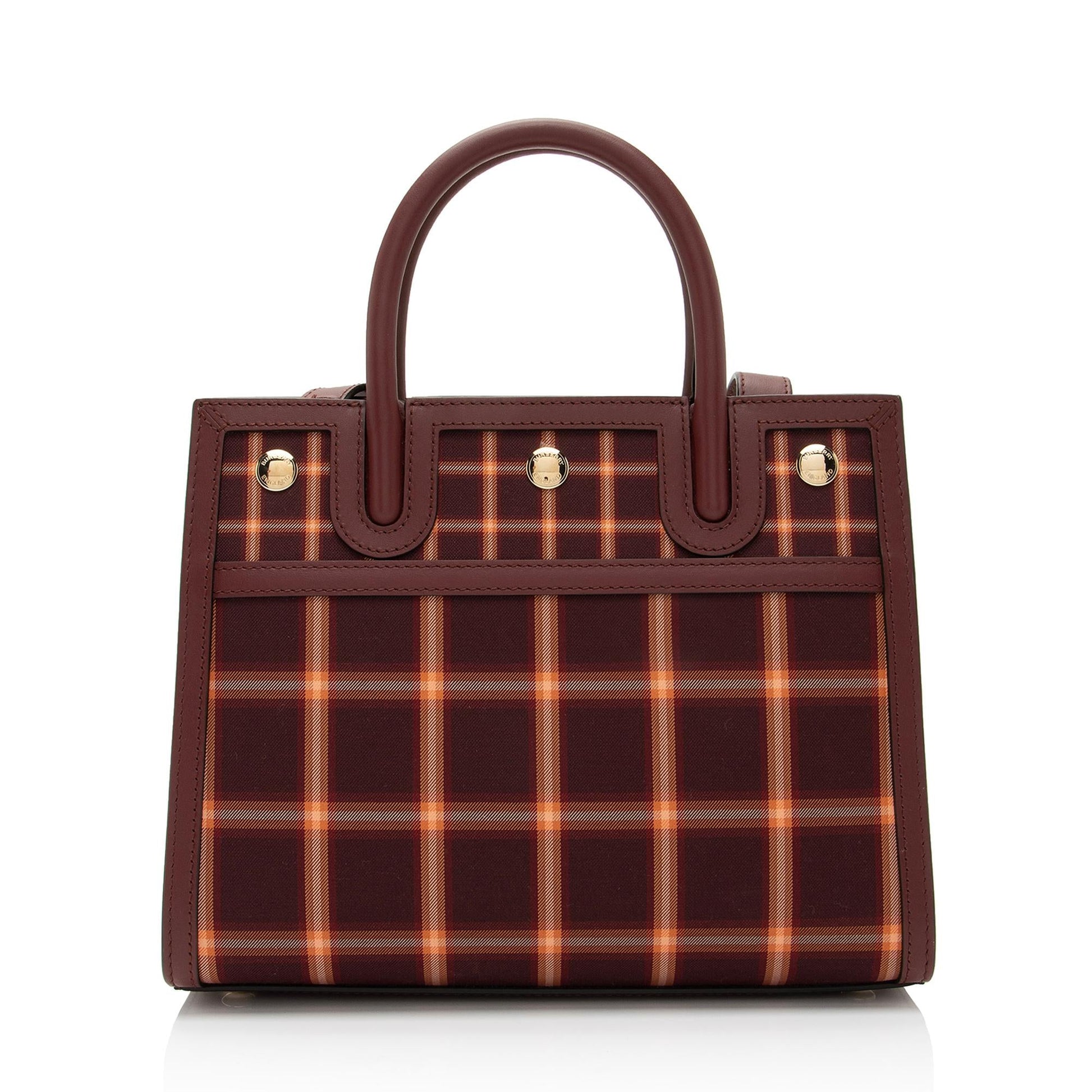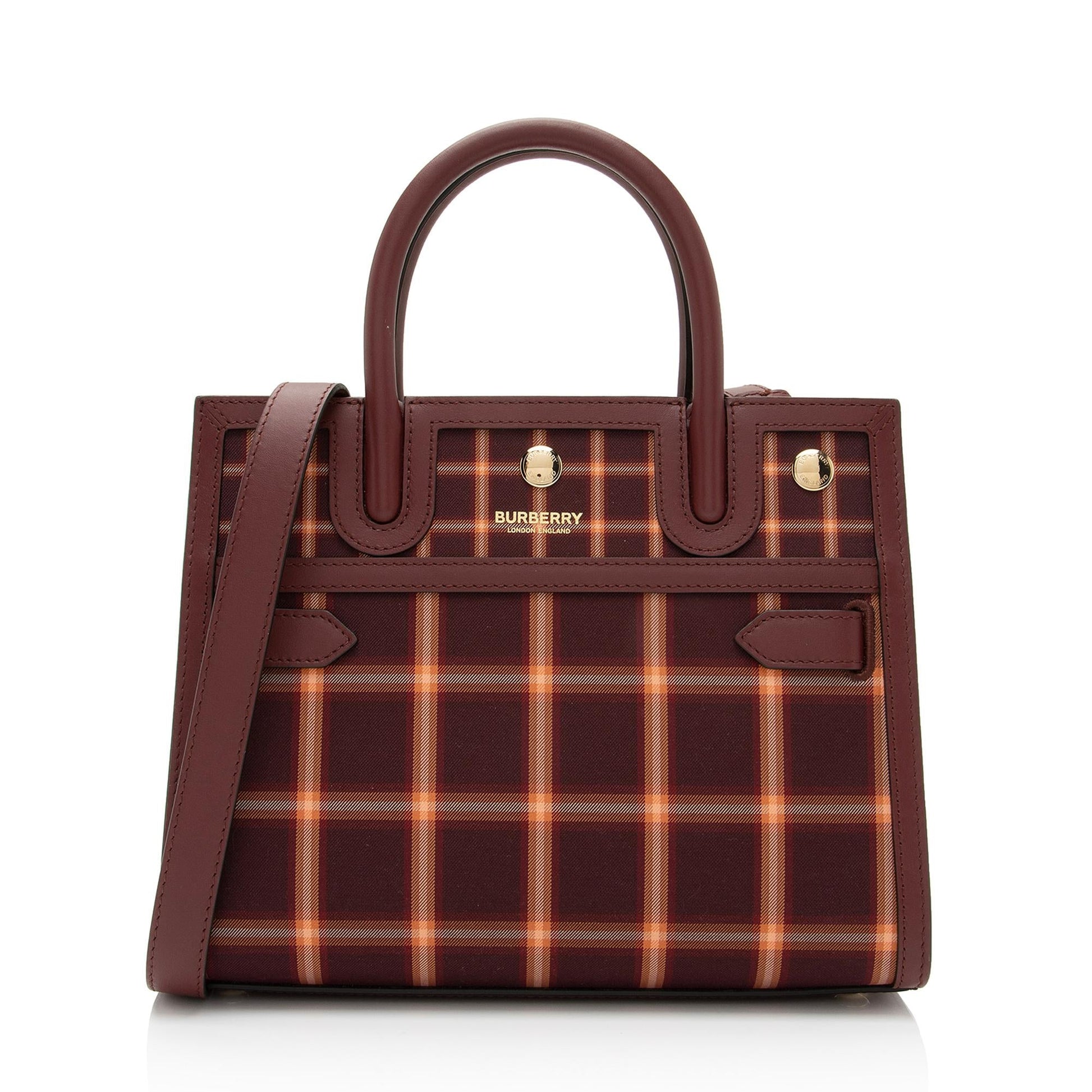 Burberry Tartan Check Smooth Calfskin Title Mini Tote (SHF-zkxnVr)