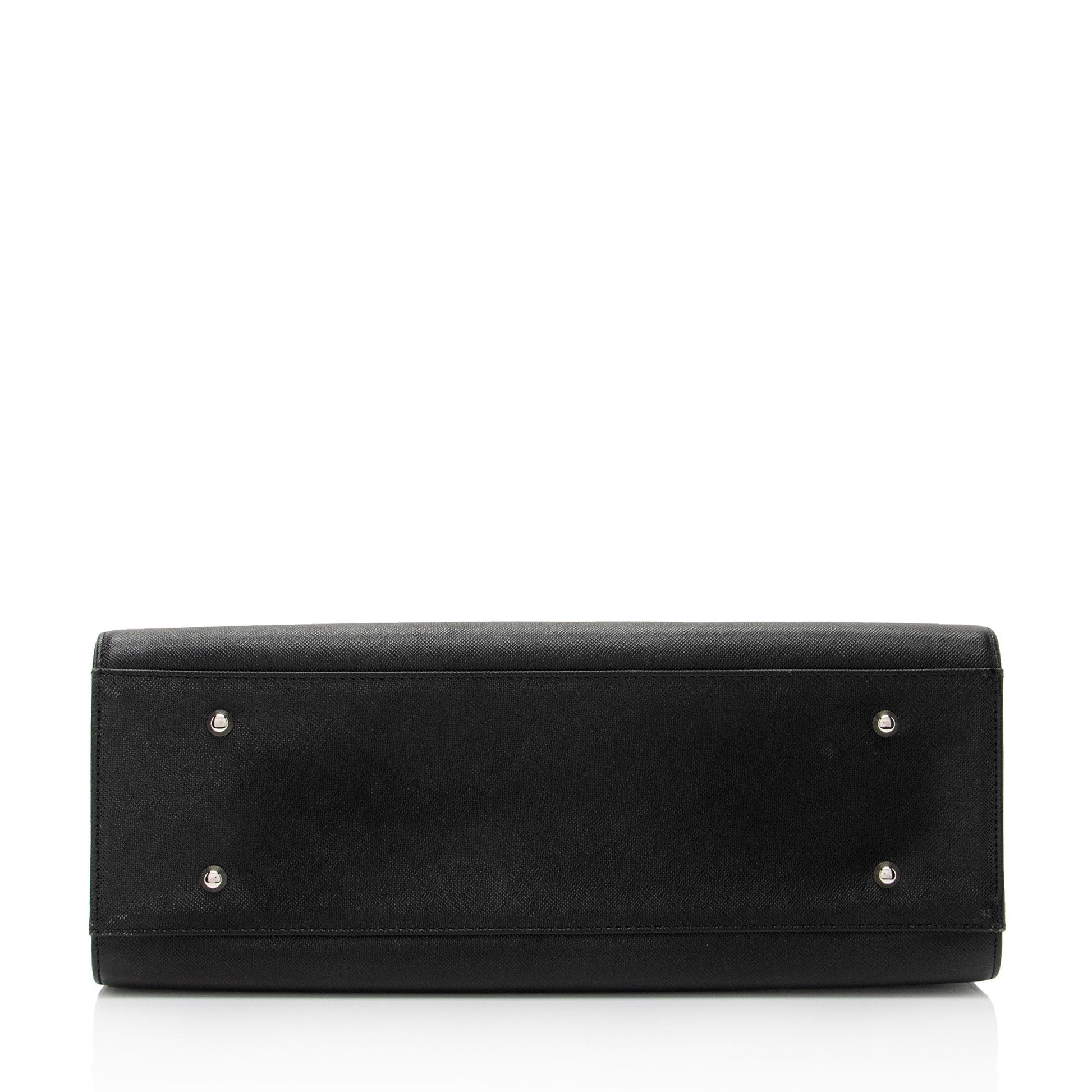 Condition Notes: Light wear to exterior bottom corners. Minor scuffs and wear throughout exterior. Minor creasing to handle bases. Light surface scratches to hardware. Popped seam to interior bottom corner of flap. Light marks and wear throughout interior. Strong interior odor.