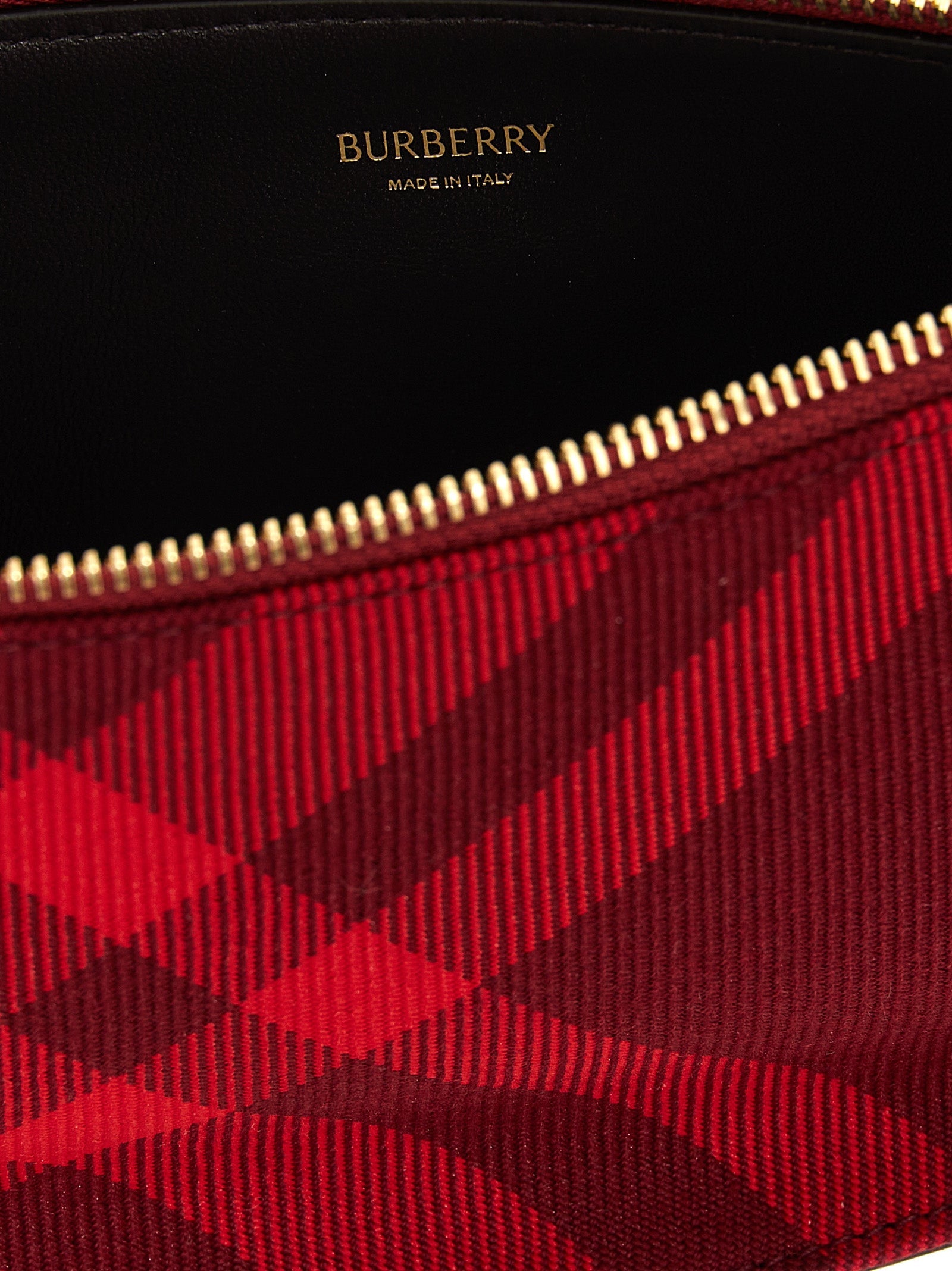 Shield' mini shoulder bag in check print wool blend fabric, removable doorbell charm, zip closure, adjustable shoulder strap.
