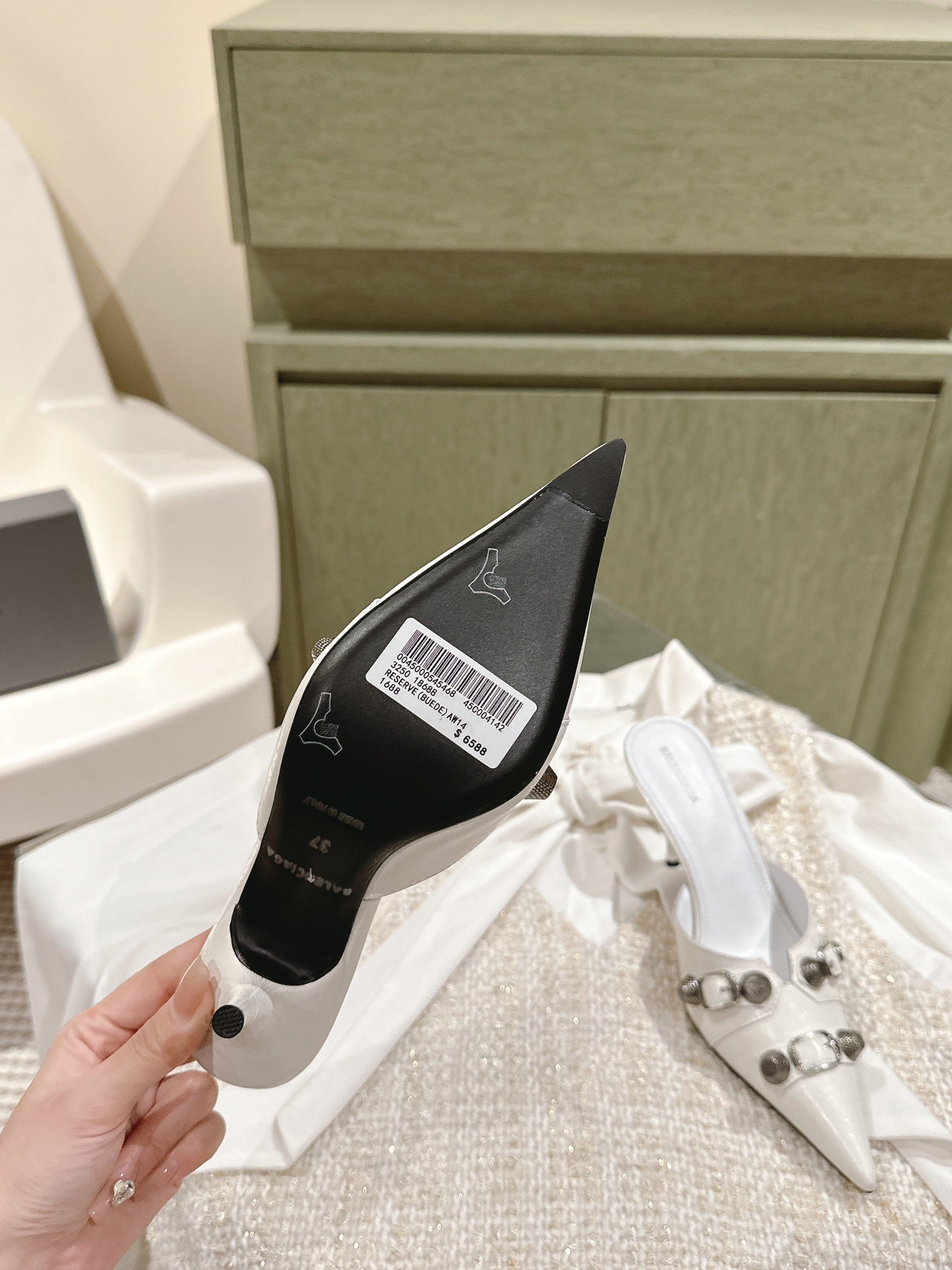 Balanciaga CAGOLE POINTED HIGH MULES IN WHITE SHINY CALFSKIN