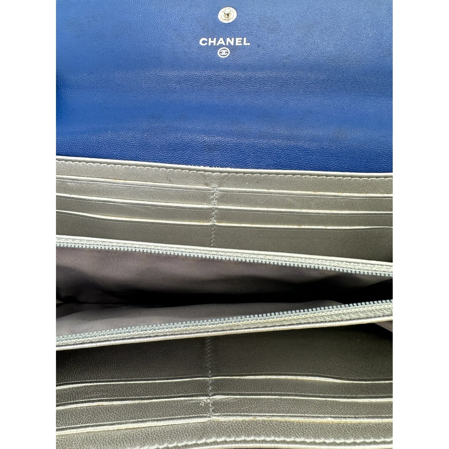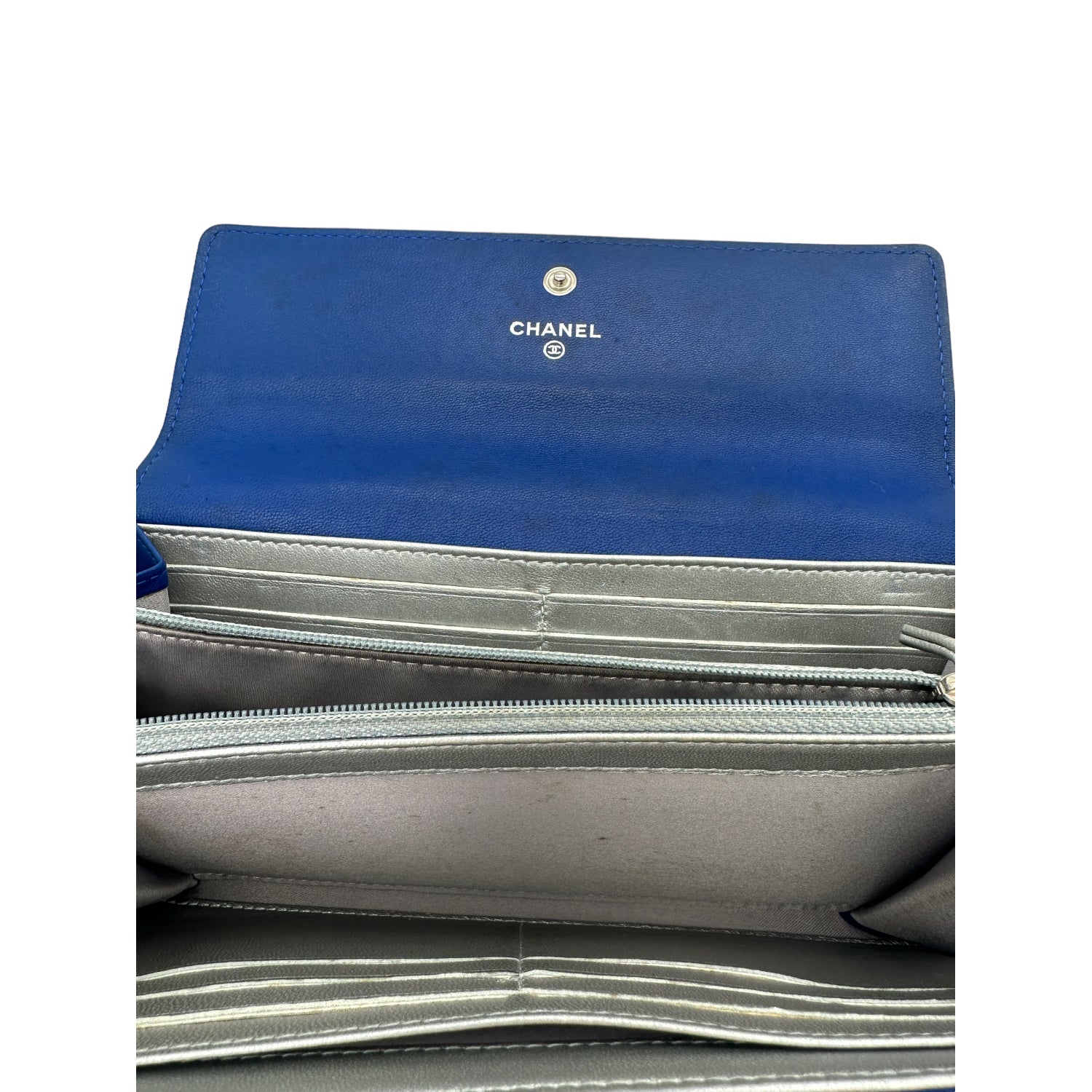 Chanel bag CC Flap Camellia Lambskin Long Wallet Blue
